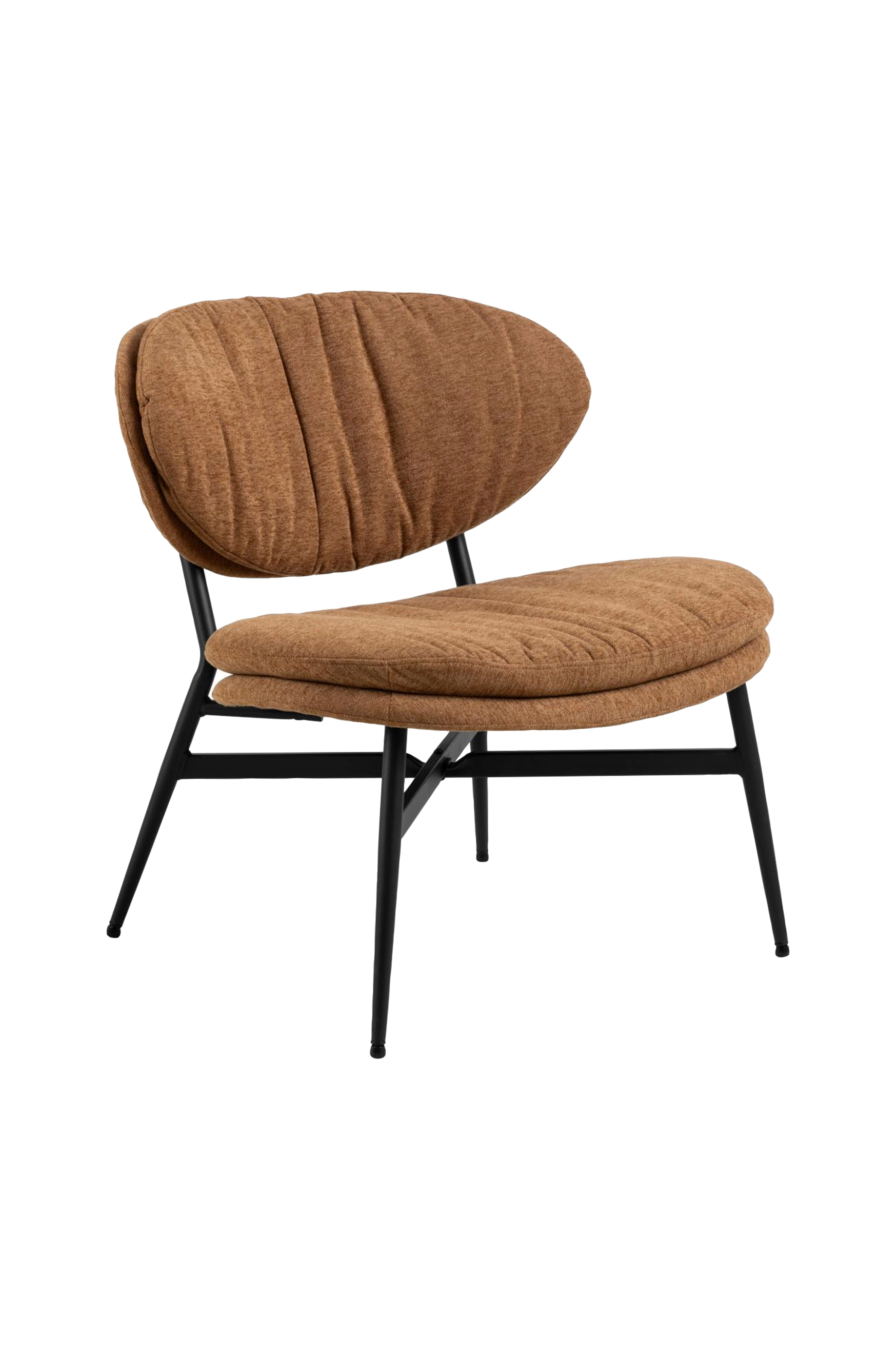 Burma loungestol, apia stof terracotta 272, stel mat sort ru pulverlakeret stål, 70x73x76 cm - denne loungestol er designet til at opfriske dynamikken i det rum, den optager. Betrukket med et varmt terrakottastof med tætvævede chenillegarner appellerer stolen til sanserne med sine proportioner og tekstur. Den krøllede effekt og det påsyede lag på både sæde og ryg giver stolen en livlig karakter, der pynter i ethvert hjørne af dit hjem.