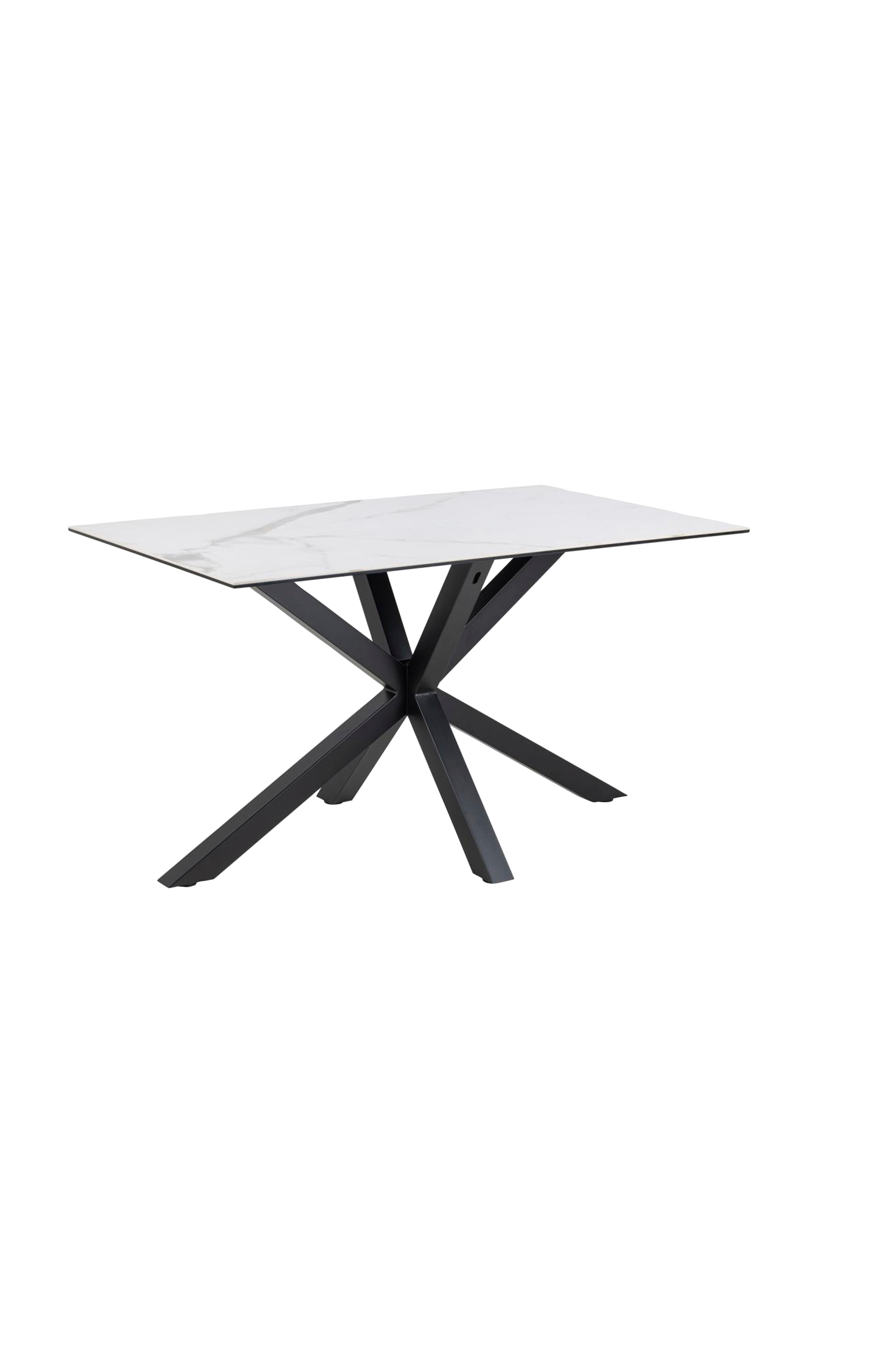 Det keramiske spisebord byder på afbalanceret æstetik og generøs plads til 6 personer. Bordet er designet med en varme- og ridsefast keramisk bordplade i marmorlook og en skulpturel krydsfod, og det har et moderne udtryk og er let at vedligeholde. Disse egenskaber gør designet til en ideel tilføjelse til ethvert hjem.