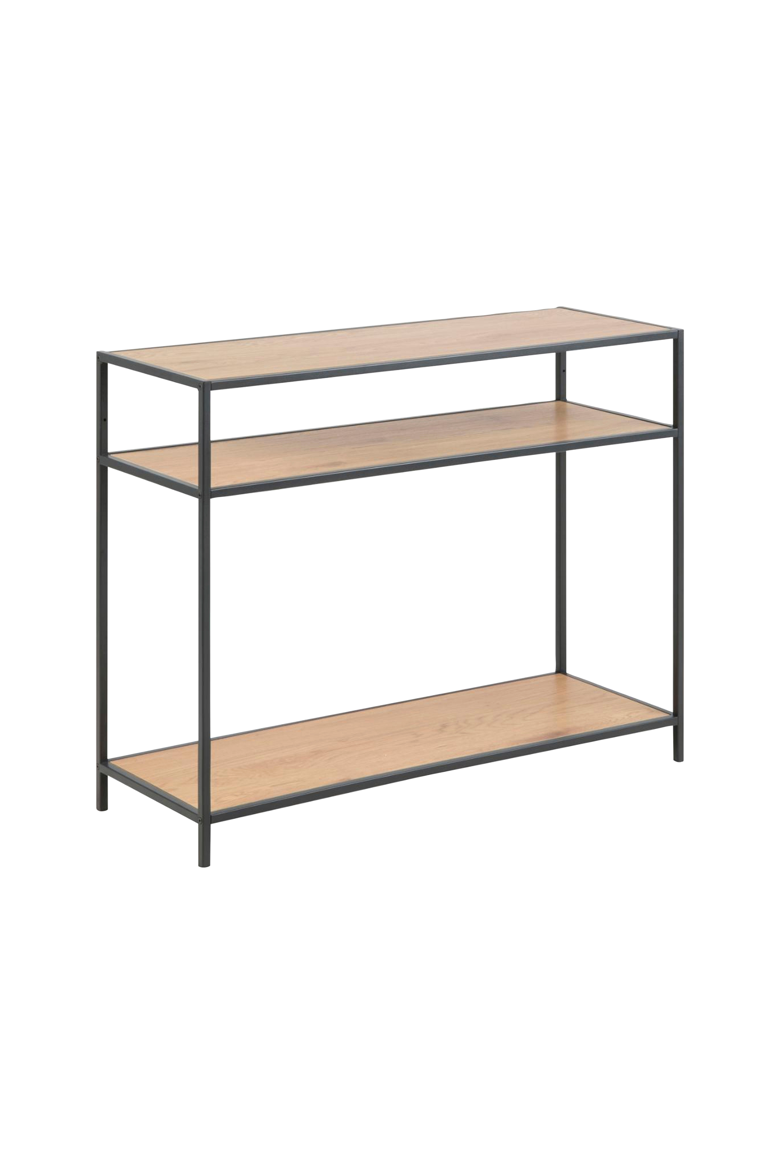 Indret rummet med stil og få samtidig god opbevaringsplads. Få mest muligt ud af denne plads med dette alsidige konsolbord, som kan kombineres med en række forskellige indretningsstile. Det er perfekt i entreen eller dagligstue, og bordpladen og hylderne nedenfor giver dig en elegant opbevaring. Det pulverlakerede metalstel i sort farve giver et industrielt udtryk og stabilitet. Bordplader af folieret MDF.