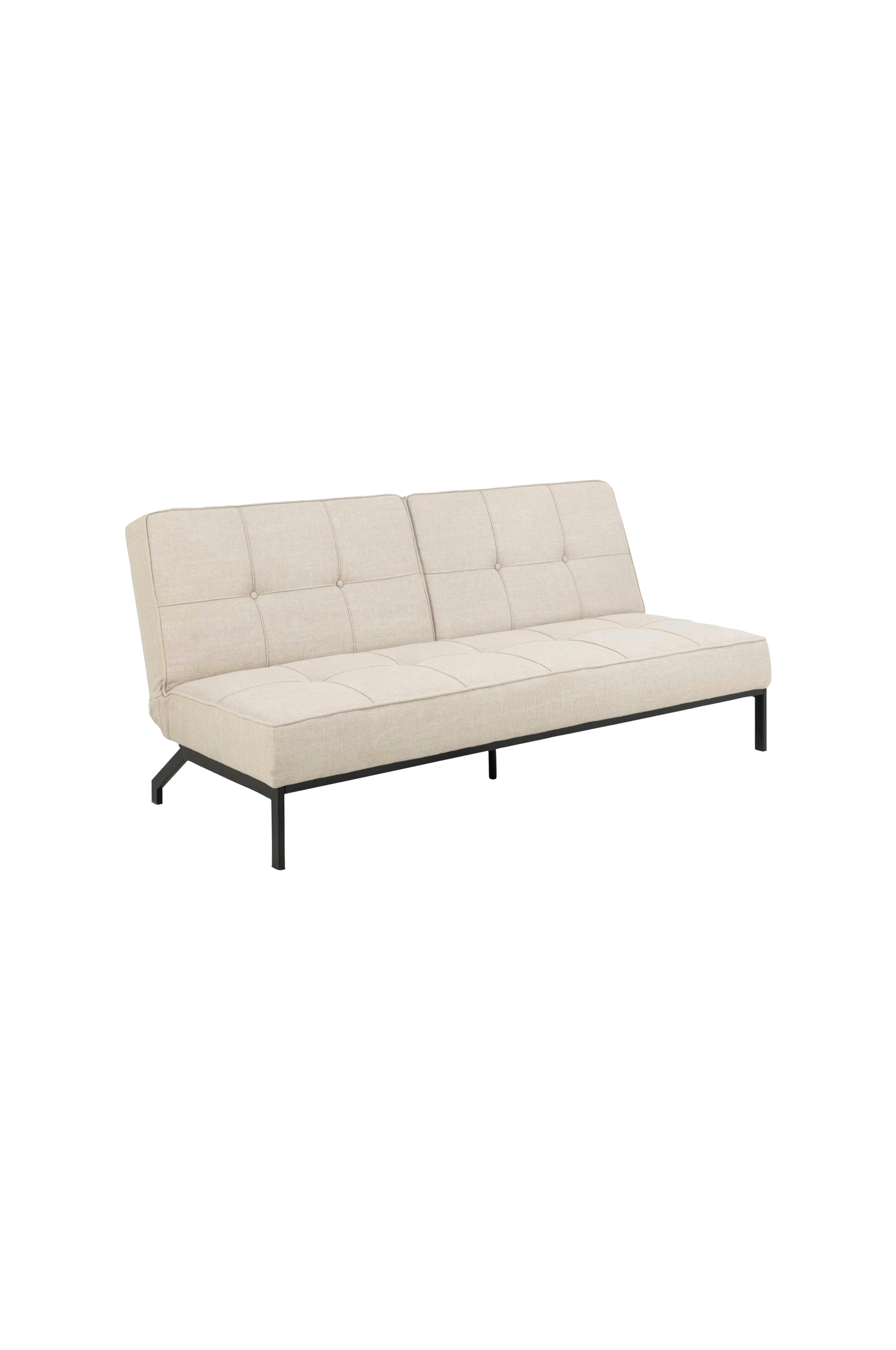 Denne stilfulde sovesofa er betrukket med et beige stof med tofarvet effekt og firkantede syninger og gør et godt indtryk. Designet med delt ryg og click-clack-systemet gør den ideel til multifunktionelle rum. Den alsidige sovesofa har 3 forskellige positioner og kan omdannes fra en liggestol til en seng til overnattende gæster på et splitsekund. Mål på sengen: 120x198 cm.