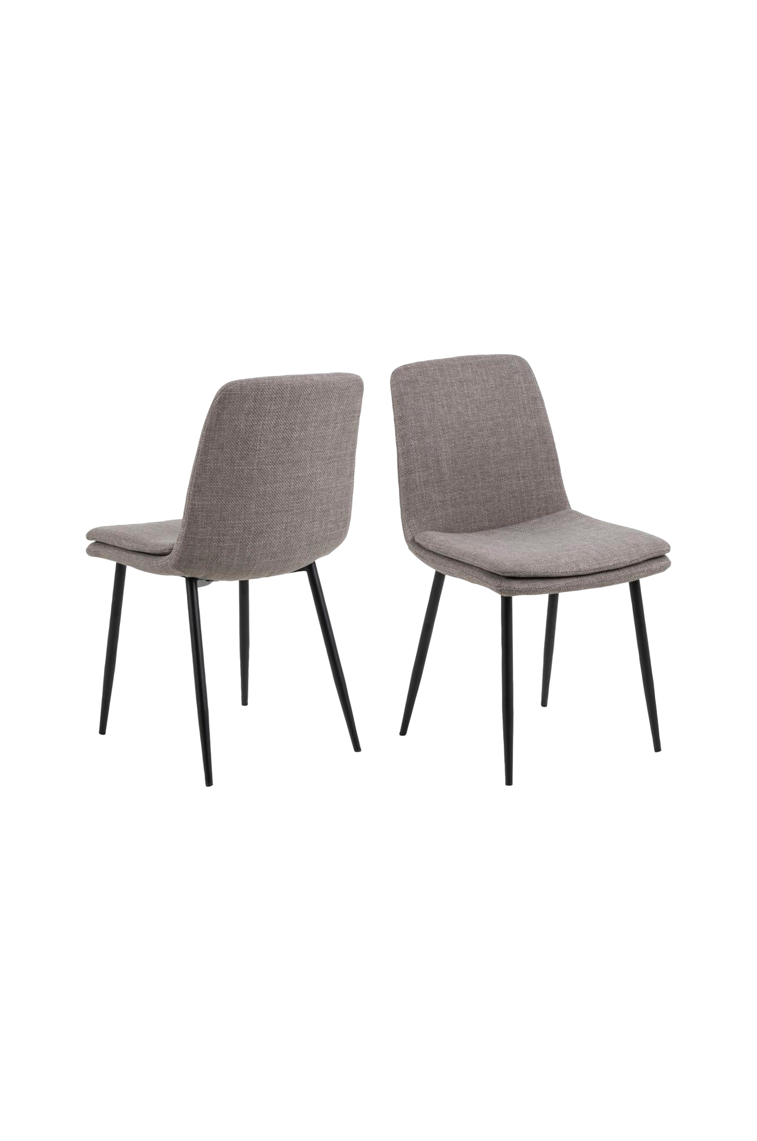 En strømlinet silhuet har sin egen charme, men når man tilføjer et påsyet lag på sædet, får man pludselig en opdateret stil, der smigrer enhver spisestue. Den tofarvede effekt af det strukturerede lysegråbrune betræk øger stolens visuelle dybde. Denne moderne stol understøttes af slanke sorte metalben og tilbyder en blanding af elegance og alsidighed.