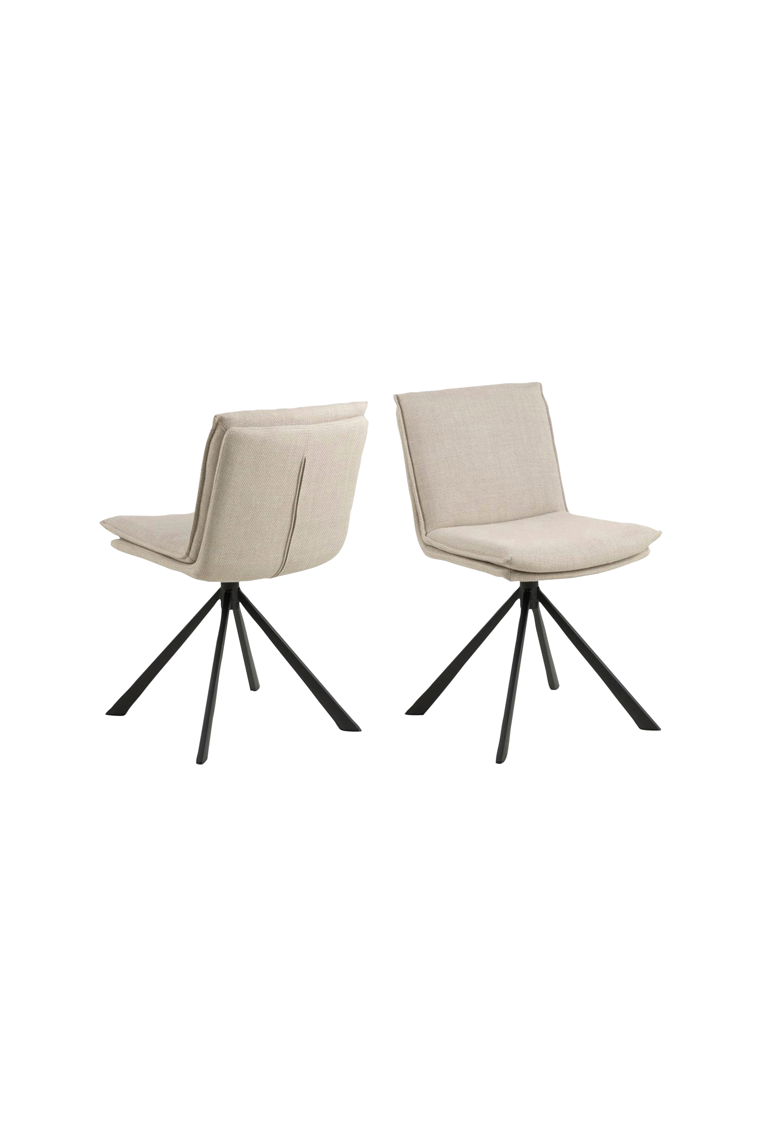 Tilføj personlighed til din spisestue - denne stol har masser at give af. Sædet er betrukket med et beige stof med en tofarvet effekt og har et karakteristisk struktureret look med en hynde på toppen, der ser ud til at være løs, men det er den ikke. Sikke en cool detalje. Det moderne look understreges yderligere af den 4-stjernede sorte metalbase med drejefunktion.