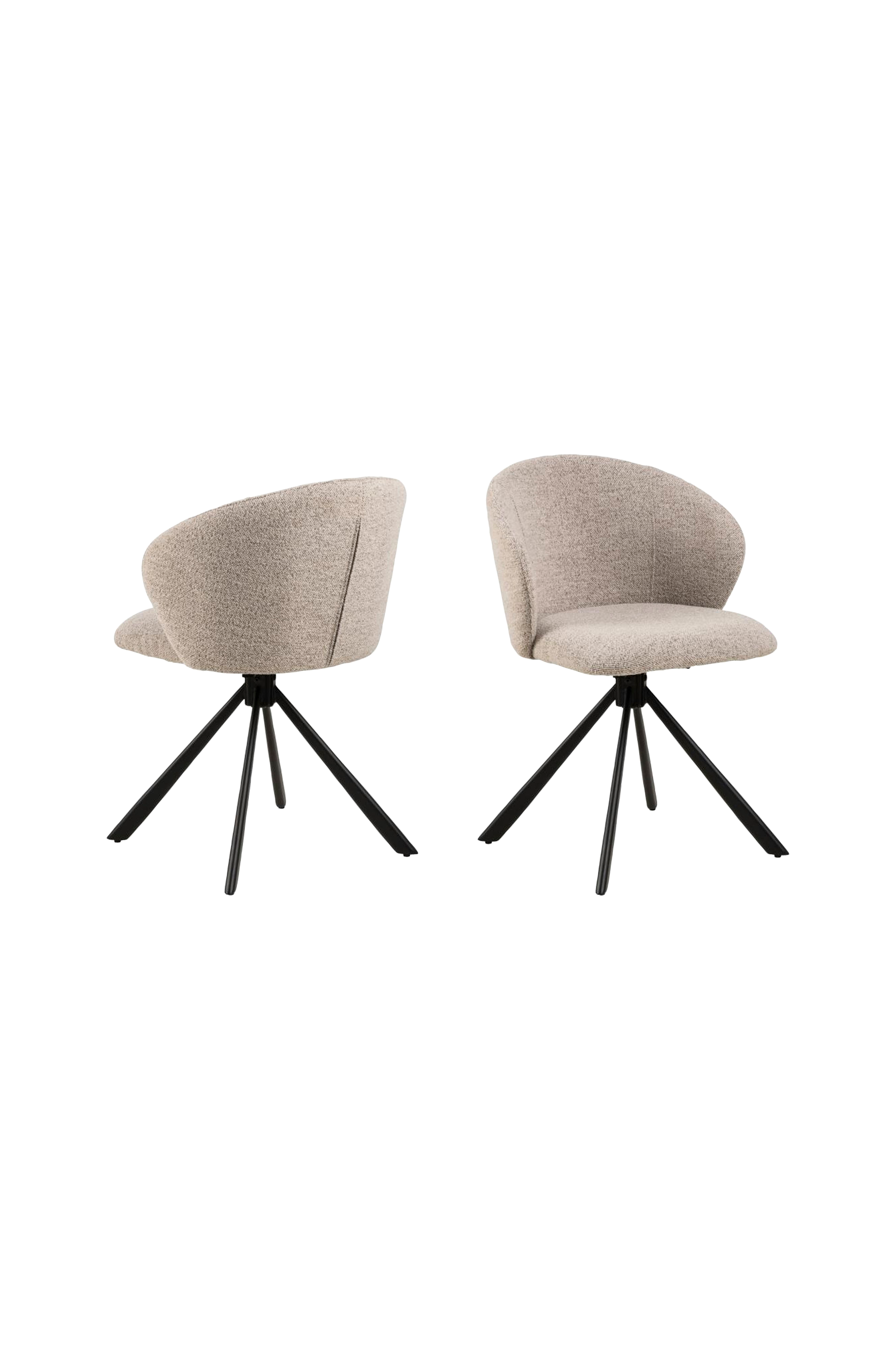 Til særlige lejligheder eller til hverdag - denne spisebordsstol kan klare begge dele. Takket være drejefunktionen er det ikke nødvendigt at rejse sig eller dreje stolen. Sædets organiske kurver og den slanke sorte metalbase giver stolen et feminint look. Det beige betræk er pakket ind i et blødt bouclé-stof med en krøllet struktur, som gør stolen interessant at se på.