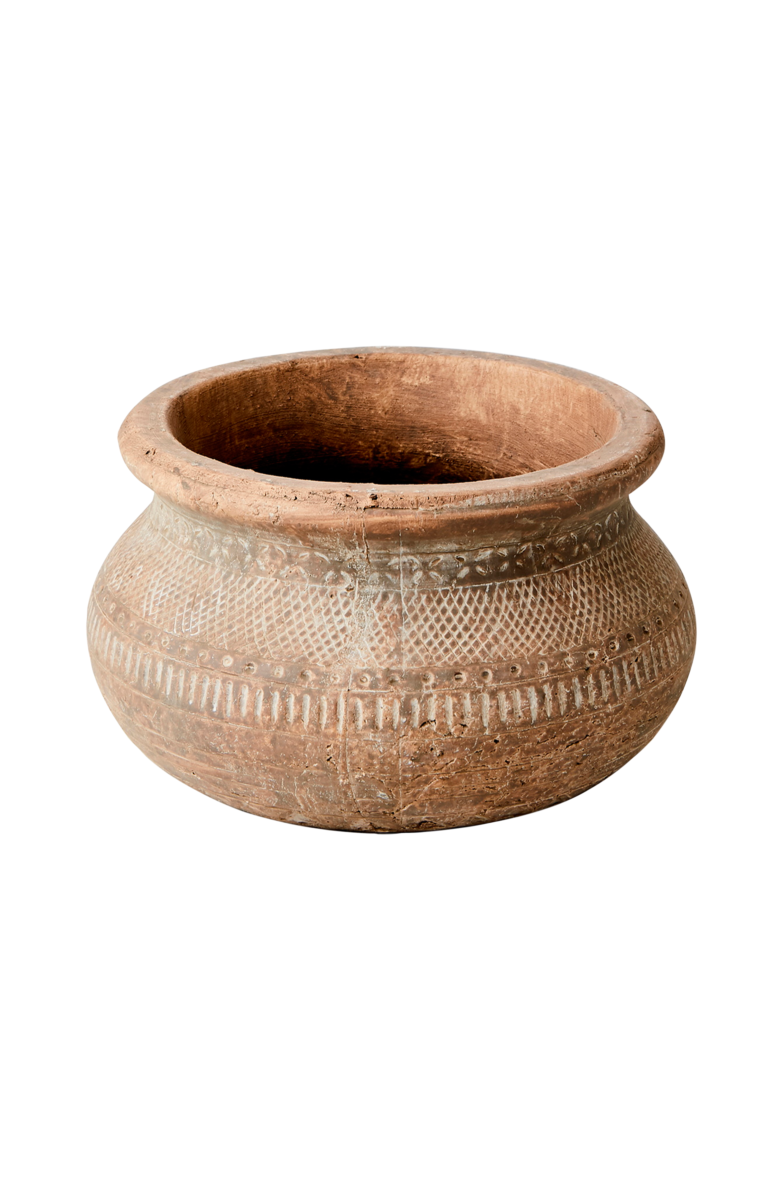 Rustik terrakottakrukke med et dekorativt mønster omkring. En smuk indretningsdetalje, som passer godt ind i de fleste rum. Stil den hvor som helst, og sæt den sammen med andre potter eller dekorationer i forskellige højder for at skabe et flot blikfang eller et stilfuldt stilleben. Glem ikke at sætte en underkop under urtepotten for at undgå pletter på overfladen. Indvendige mål 14 cm.
