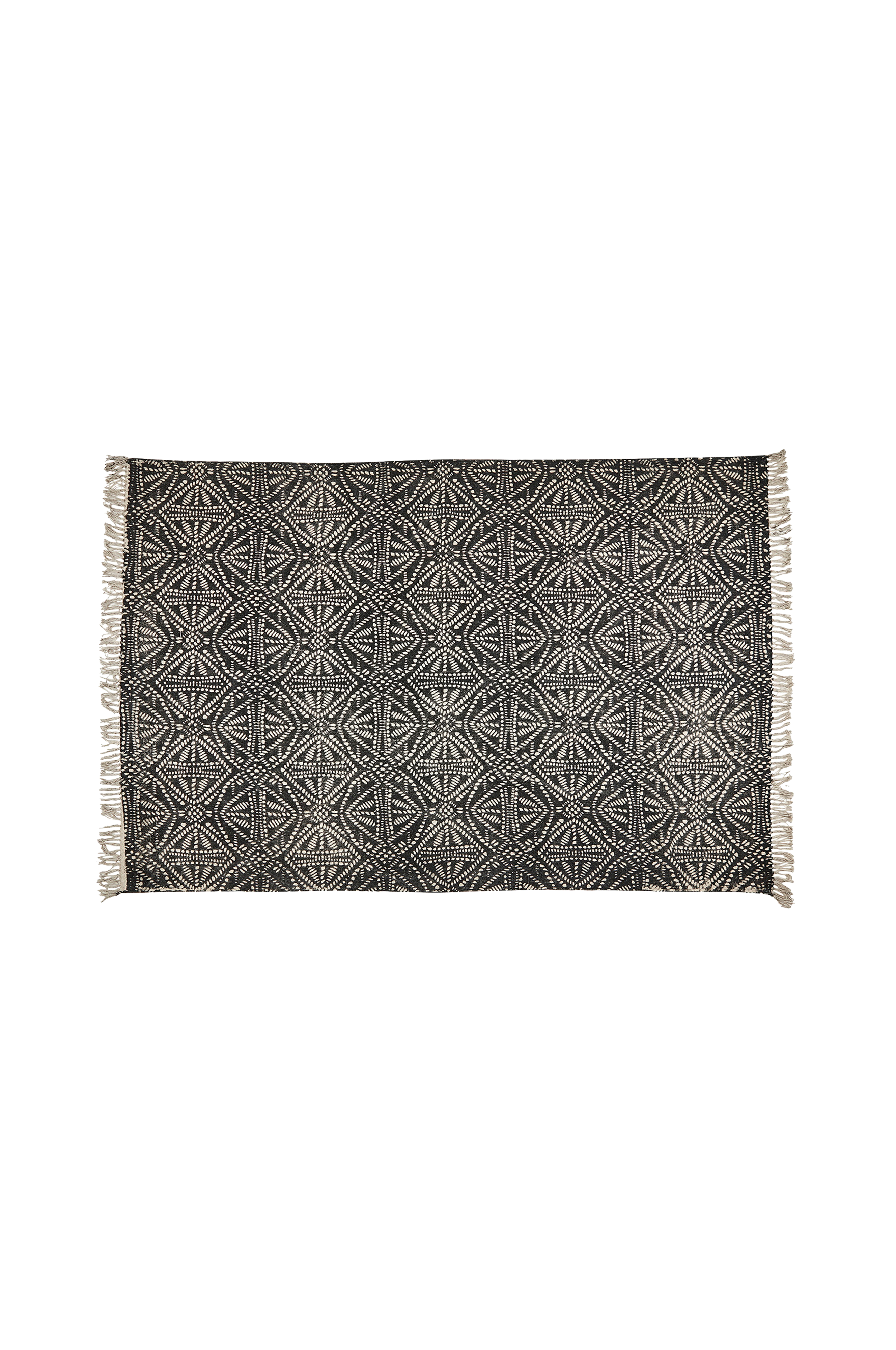 Et mønstret bomuldstæppe, der giver dit hjem en bohemeagtig stemning med frynser langs de korte sider.