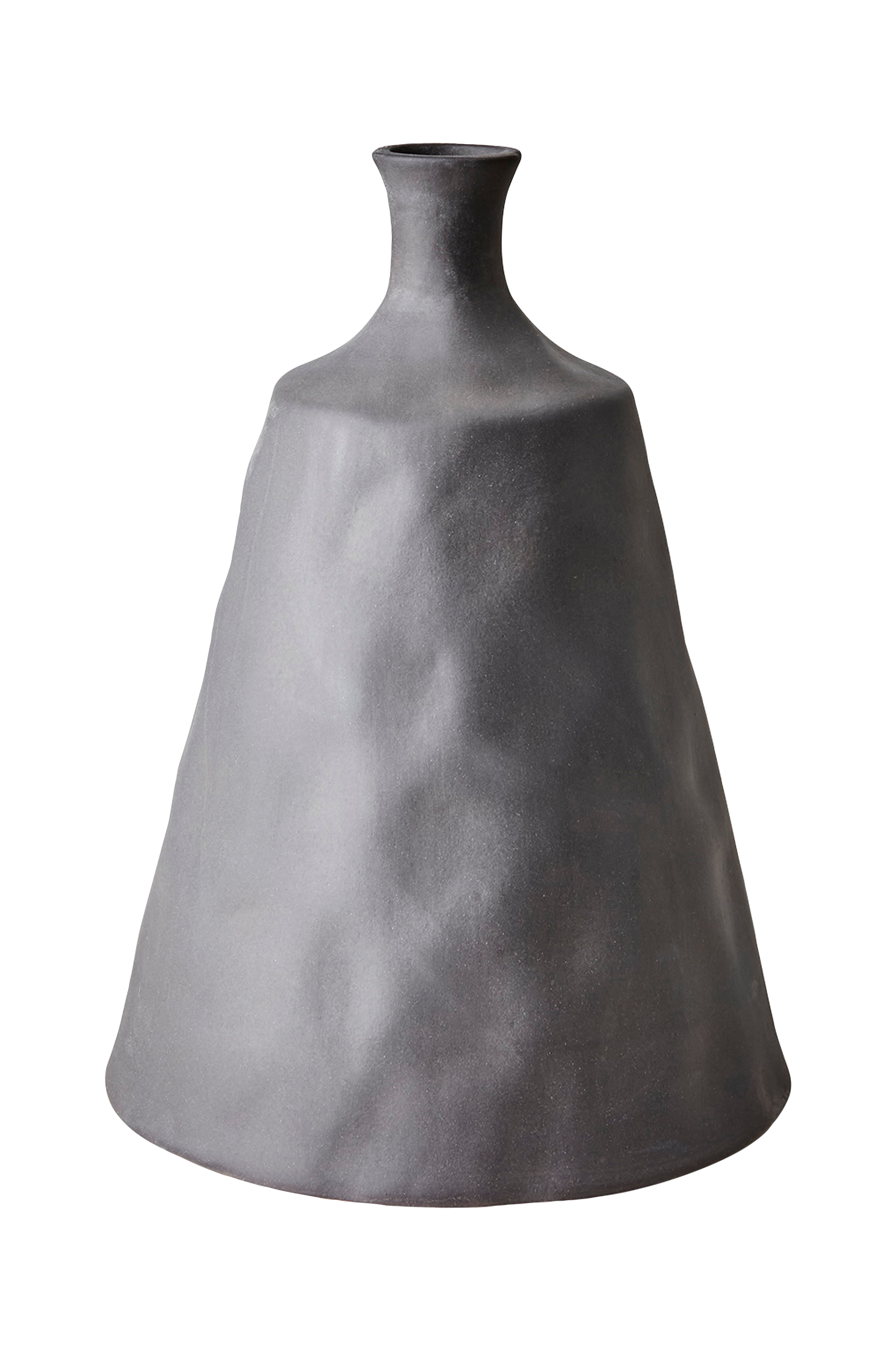 Keramisk urne med en smuk grå farve. Porøst materiale, brug vandtæt bakke for at undgå pletter.