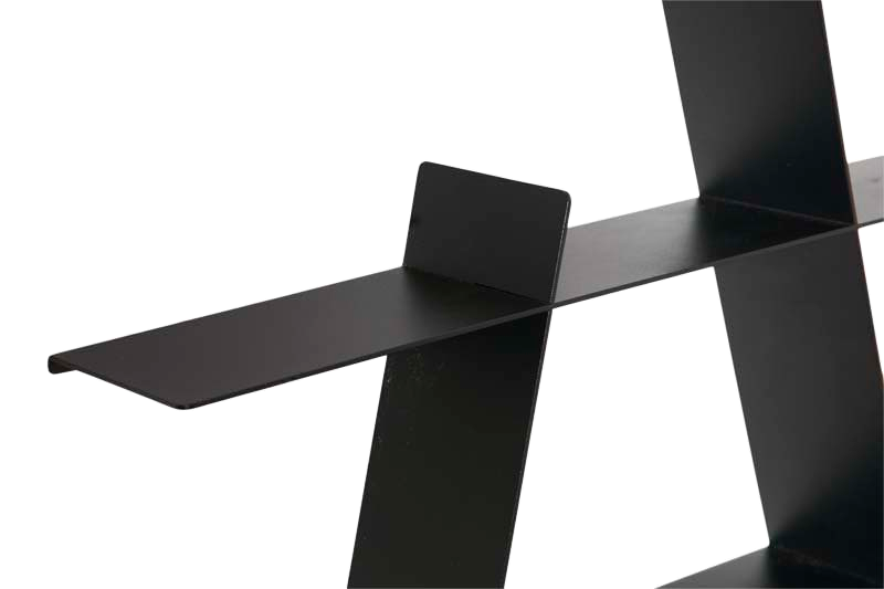 Den ikoniske A-Shelf har fået et moderne udtryk med dette design i sortmalet stål, som giver indretningen et urbant præg. A-Hylden i stål er danskproduceret af delvist genanvendt stål fra skrotindustrien.