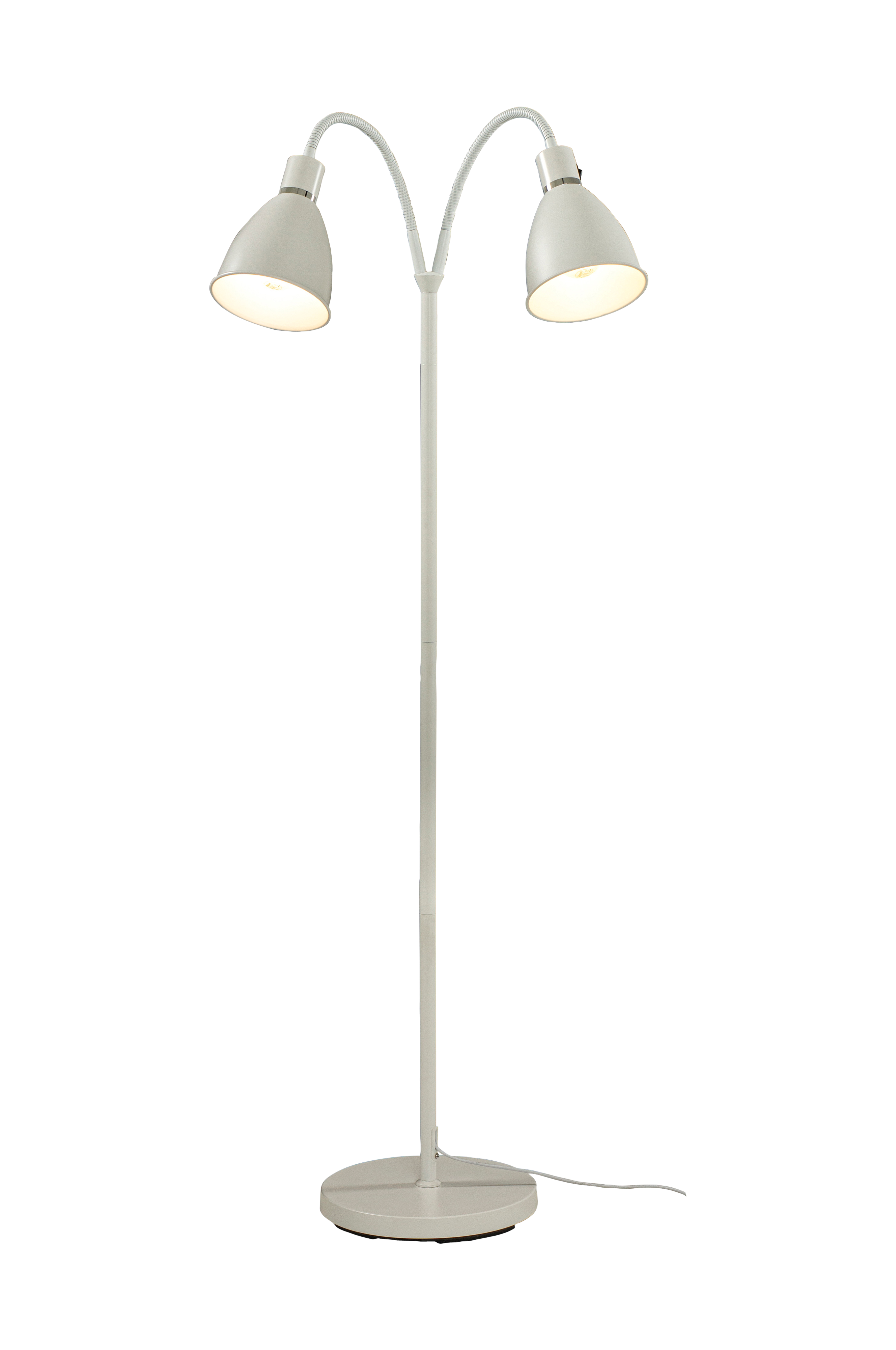 Gulvlampen Idre med dobbelte lampehoveder har et klassisk design i sortlakeret metal med dekorative ringe i mat messing. På hvert lampehoved er der en strømafbryder, så du kan vælge om du vil tænde én eller begge lamperne. Takket være bøjelige arme kan du nemt rette lyset derhen hvor det ønskes. Idre gulvlampe kan også kombineres med andre lamper i Idre-serien.