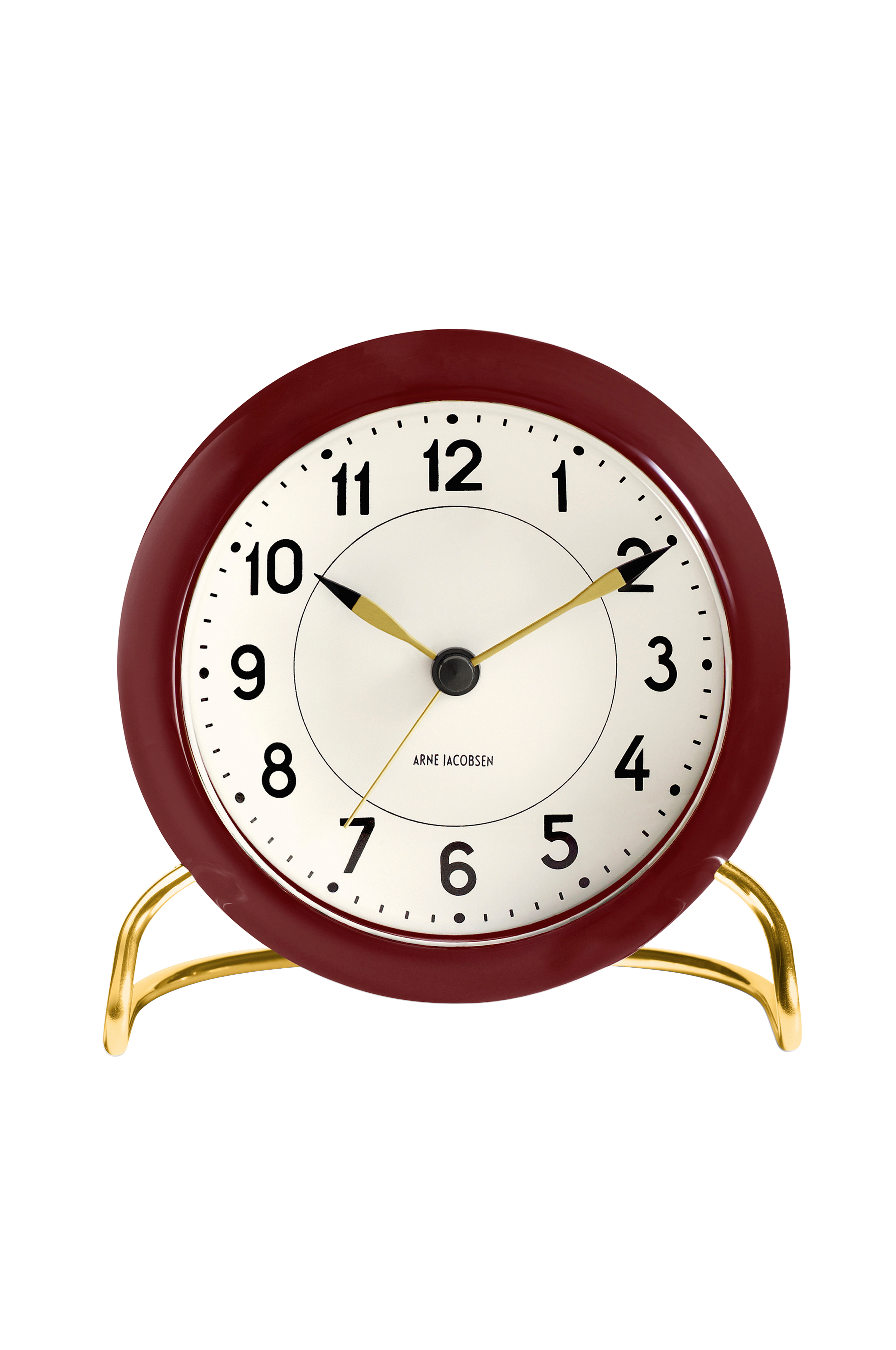 Den verdensberømte arkitekts bordur med alarm blev skabt i 1939. Det grafiske udtryk og metalfoden med tydelig inspiration fra stolene Myren og Syveren gør uret til en perfekt gave til designelskere. Uret passer overalt i det moderne hjem, og med de opdaterede funktioner snooze og lyssensor er det et effektivt vækkeur på natbordet. Findes foruden bordeaux også i sort.