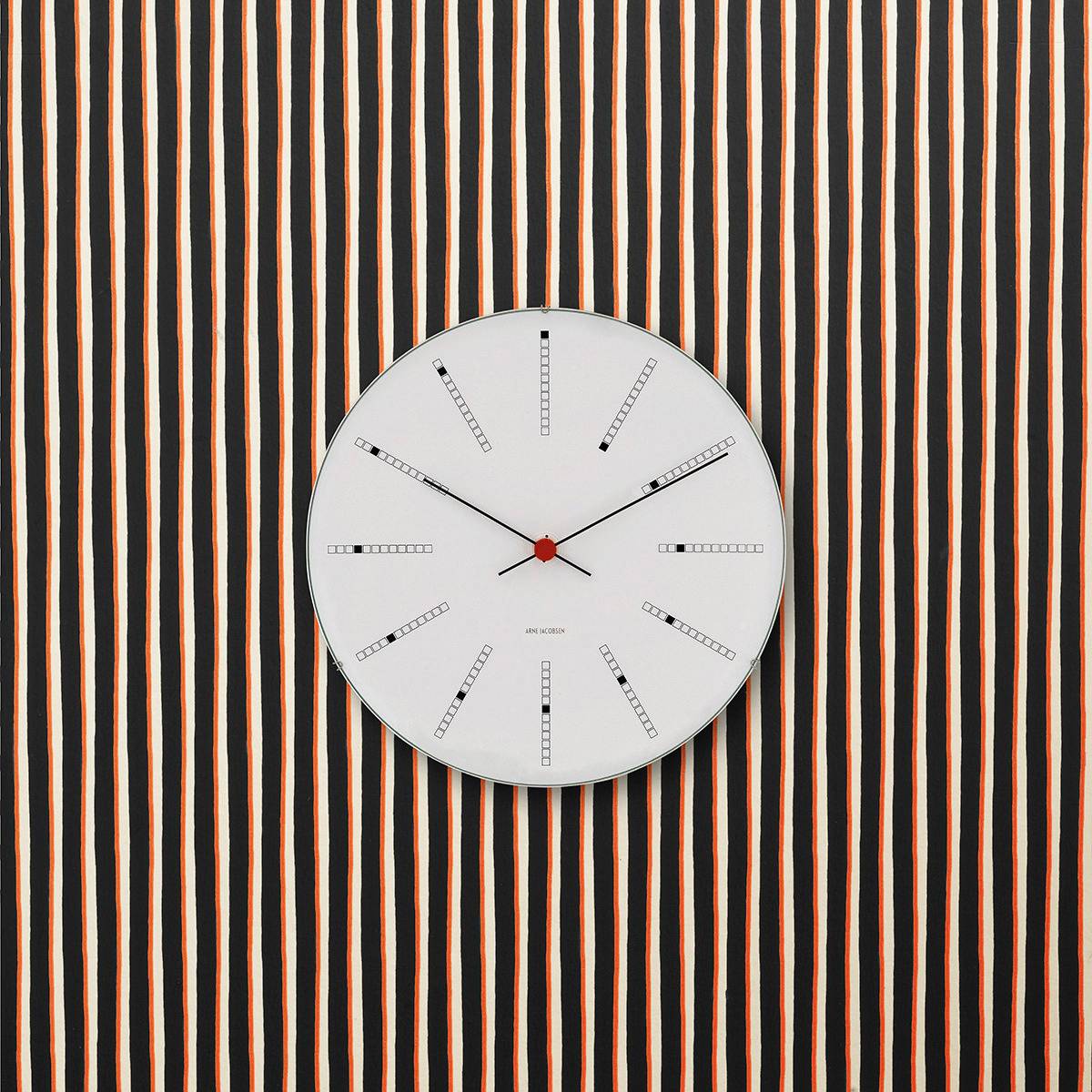 Det stilrene Bankers vægur i sort fra Arne Jacobsen Clocks er 21 cm i diameter. Designet er klassisk med et twist af små, kreative detaljer som f.eks. den elegante spiral som illustrerer tidens gang rundt på urskiven. Bankers-uret blev oprindeligt skabt til at bruge i Nationalbanken i 1971, men nu kan alle få glæde af det minimalistiske design derhjemme. Her får du et lækkert og tidløst designerur med masser af attitude i din indretning. Uret findes også i en model med Ø29 cm.