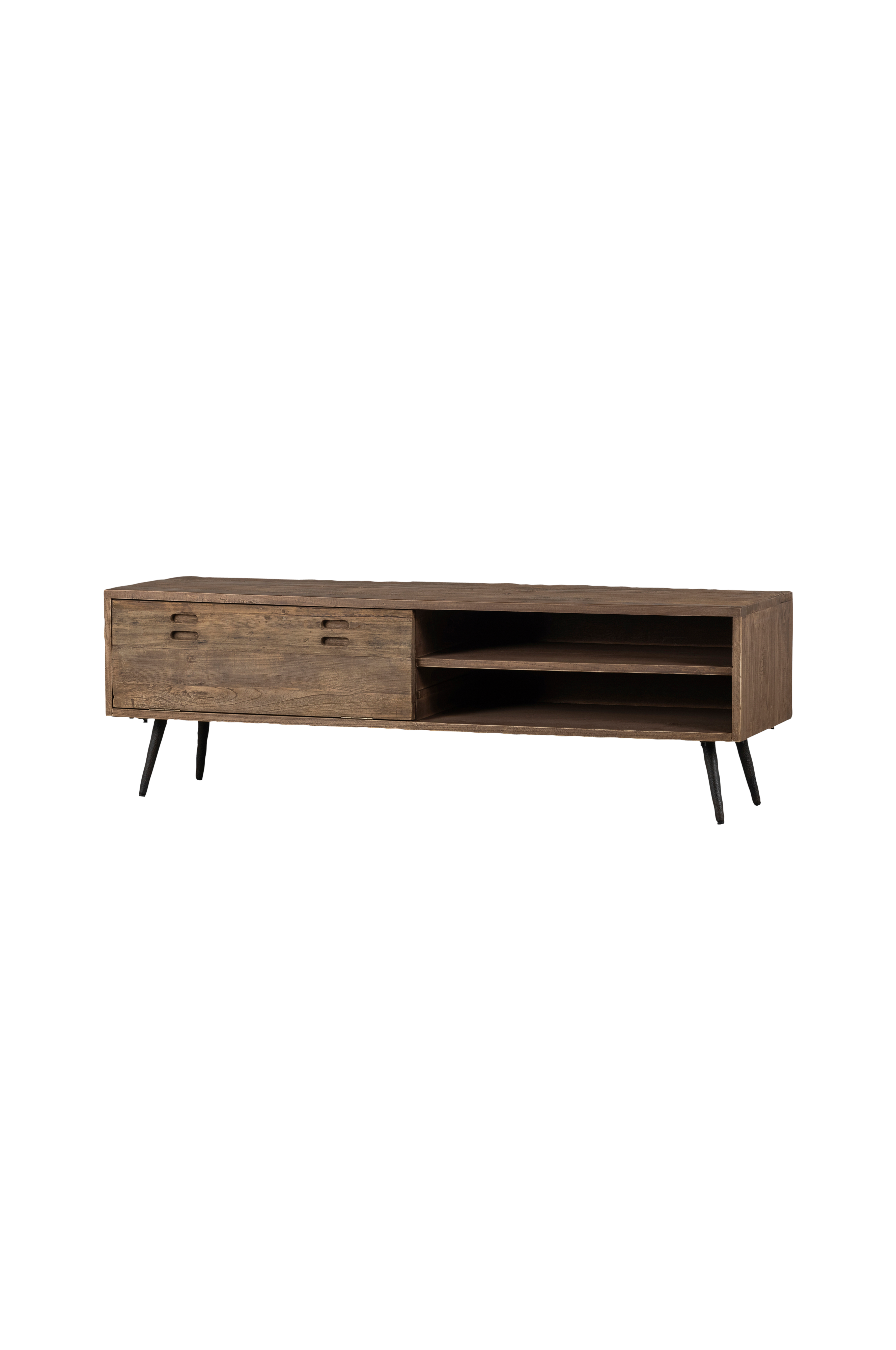 Det robuste møbel Maddox er en del af en kollektion fra det hollandske mærke Basiclabel. Maddox tv-bænk bliver rummets blikfang takket være toppen af robust, genbrugstræ. Groft genbrugstræ er kendetegnet ved knaster, åremønstre og revner i overfladen. Tv-bænken har et let gennemsigtigt, beskyttende lag voks, men kræver meget omhyggelig vedligeholdelse. Fugt trænger hurtigt ind i træet, hvilket kan give grimme ringe.
