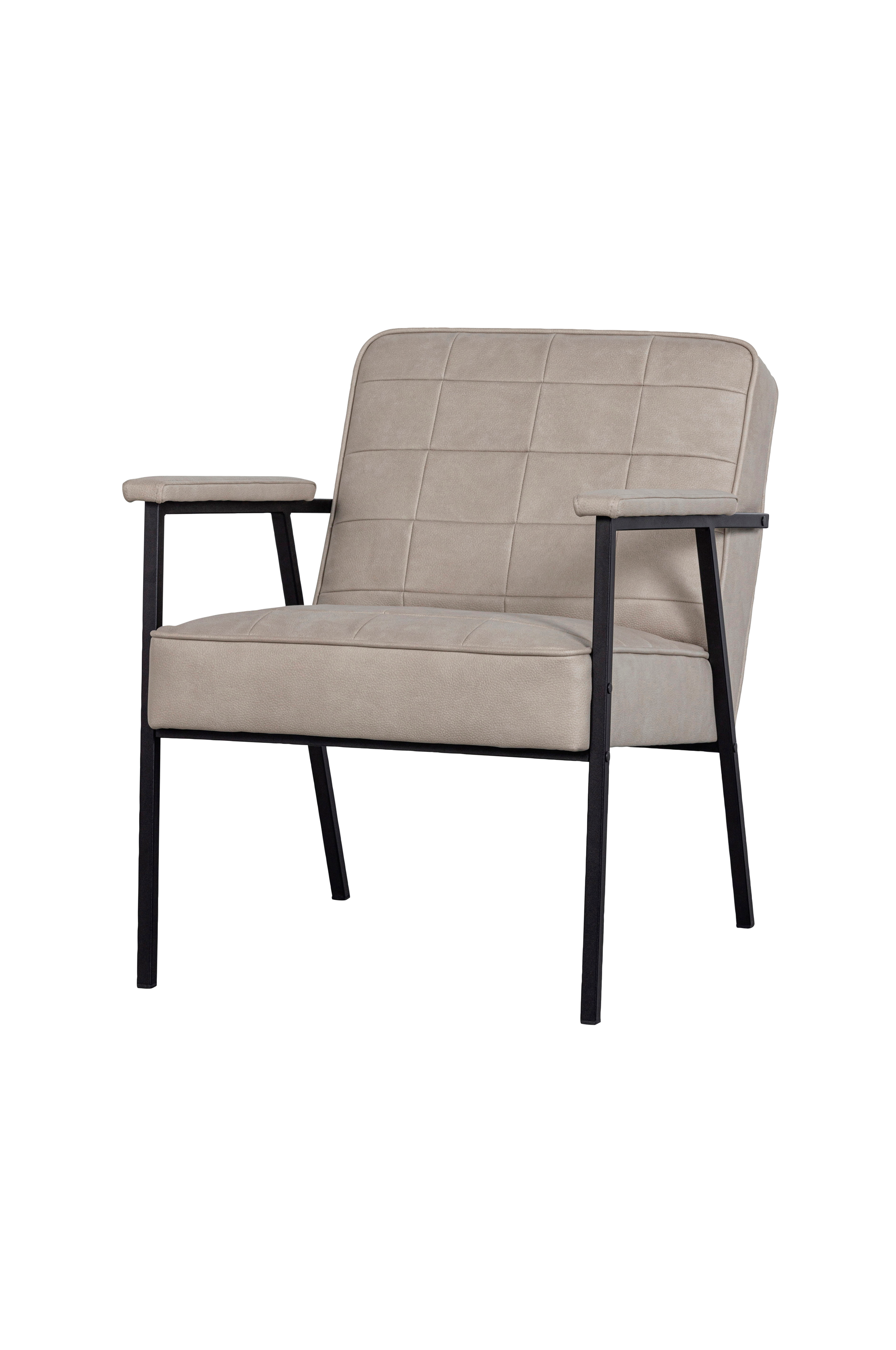 Vores mokvi-læderimitation har et unikt udseende og en blød fornemmelse. Kunstlæderet er fremstillet af 100 % polyester og har en martindale på >100.000, hvilket gør stoffet ekstremt slidstærkt. Mikrofiberen er strikket af meget små syntetiske fibre. Denne produktionsteknik giver fasthed og en fin, blød følelse. Stoffet er meget farveægte og holder formen godt. Lænestolens stel er lavet af metal med en matsort pulverlakering. Sæderammen er lavet af en kombination af spånplader, krydsfiner og hårdttræ. Sædet indeholder t3538-skum, som giver et let fast sæde og gør det behageligt at sidde på i timevis. Ryglænet er fyldt med t2130-skum.