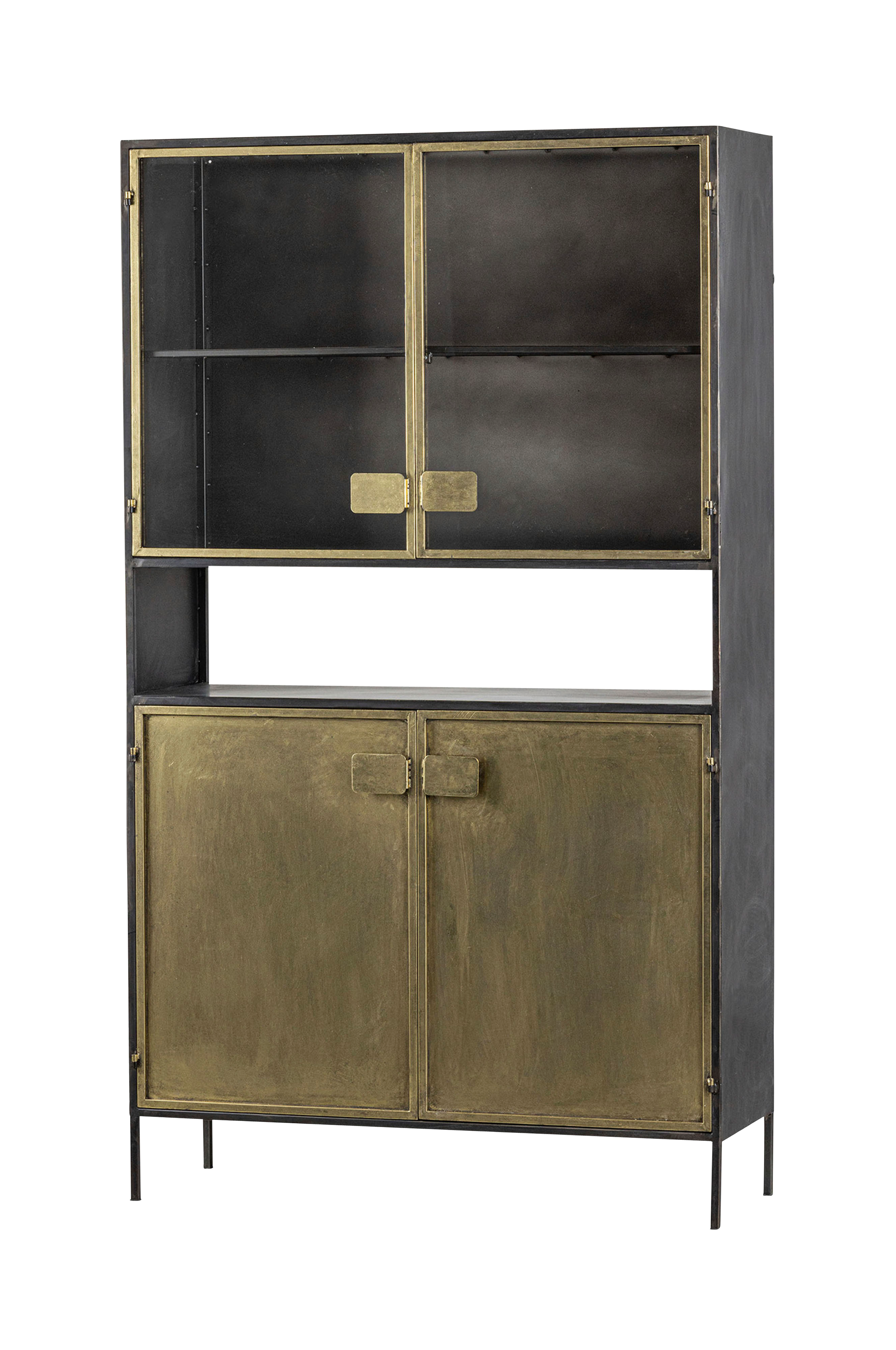 Dette robuste vitrineskab er en del af en kollektion fra det hollandske indretningsmærke BePureHome og giver et luftigt indtryk takket være det legende design. Pack vitrineskab har en guldblank finish med delvist gennemsigtige låger og har plads til dine smukkeste pynteting.