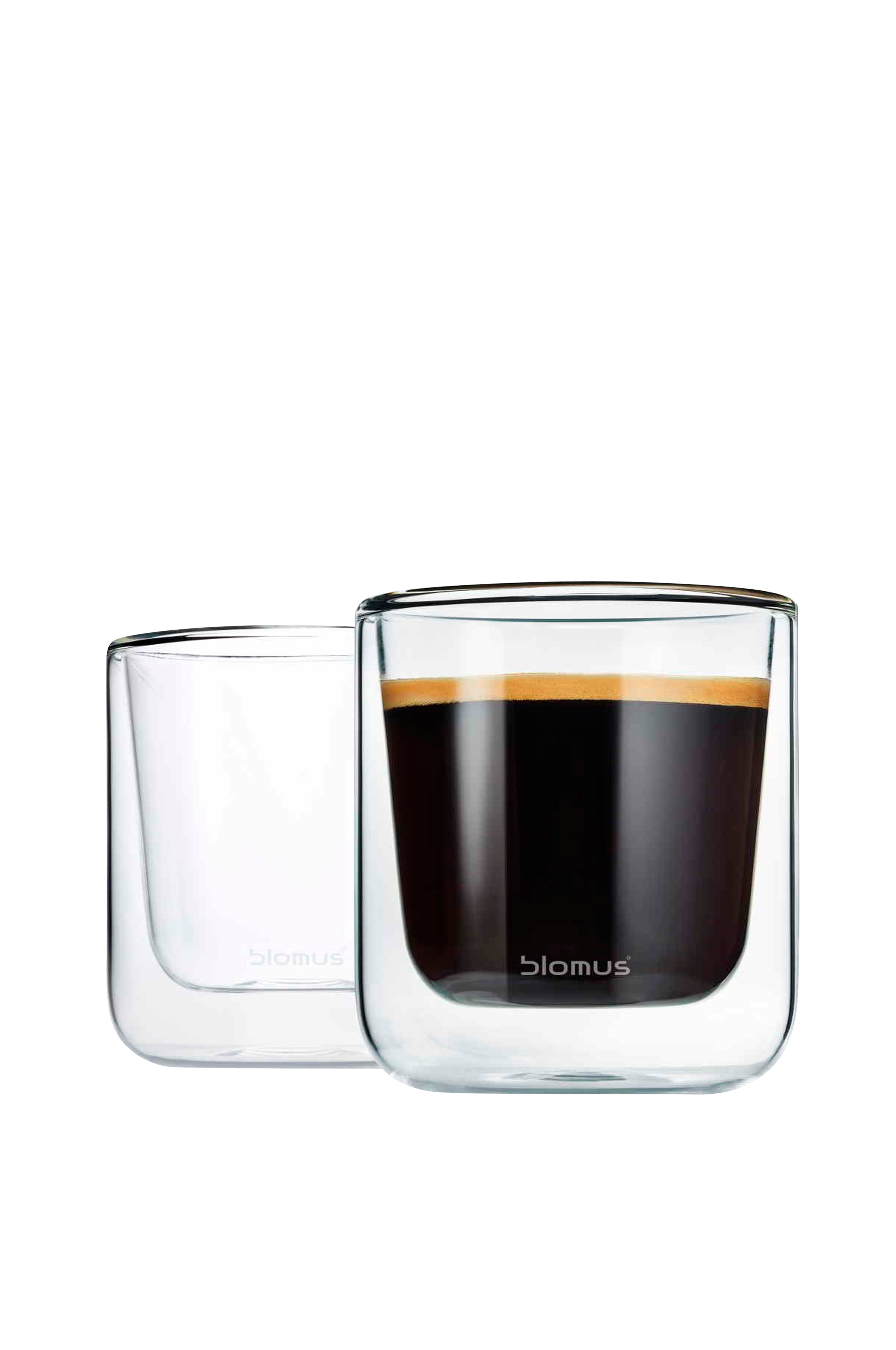 Sæt med 2 trendy kaffeglas i klart glas, som gør din kaffepause rigtigt luksuriøs. NEROs glas med dobbelte sider holder varmen isoleret i glasset så du ikke brænder fingrene.