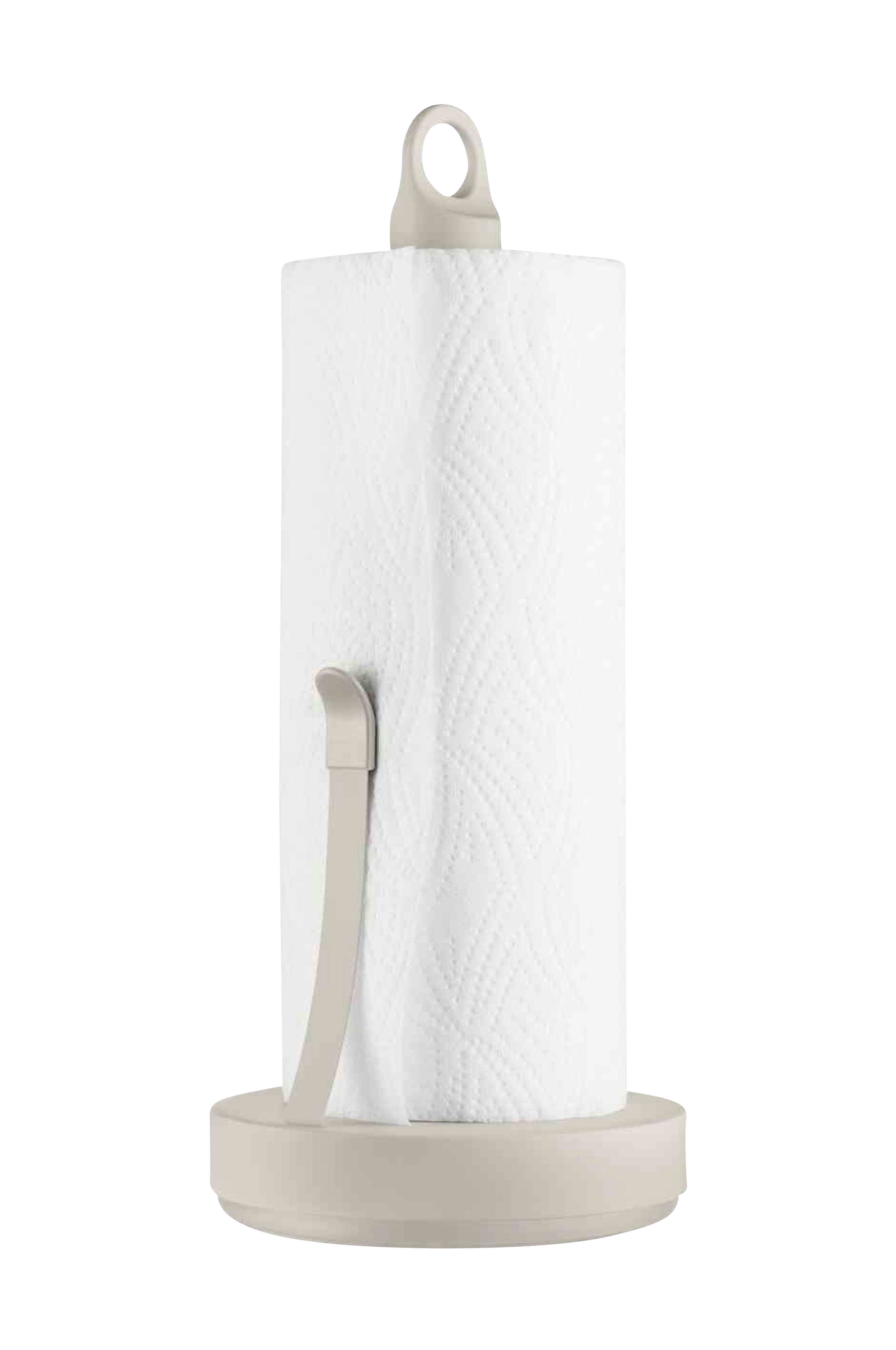 Køkkenrulleholder LOOP fra Blomus er nem at bruge med kun én hånd og har en fjeder, der forhindrer papiret i at rulle ud, når du river det stykke papir af, du skal bruge. LOOP er derfor en miljøvenlig og tidsbesparende hjælp i køkkenet. LOOP er gedigen og står stabilt på bordet. Mål: 34 cm Materiale: Mat rustfrit stål / Plast / Gummi