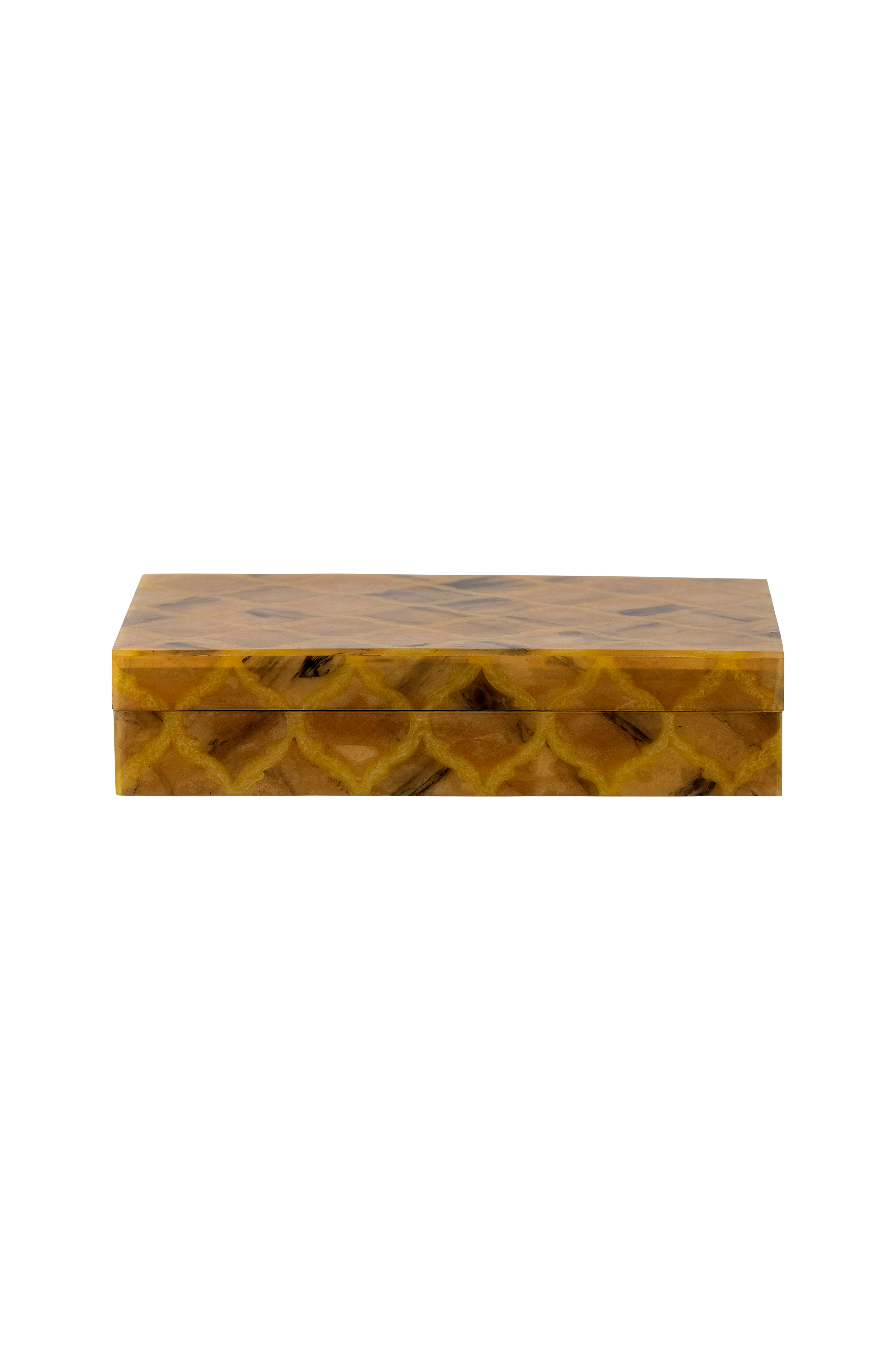 Limon æsken fra Bloomingville er lavet af resin og er både smuk og dekorativ. Den kan både bruges til opbevaring af småting eller blot som pynt i hjemmet. Æsken er dekoreret med et smukt grafisk mønster i orange farve. Den har en glat og blød overflade.
