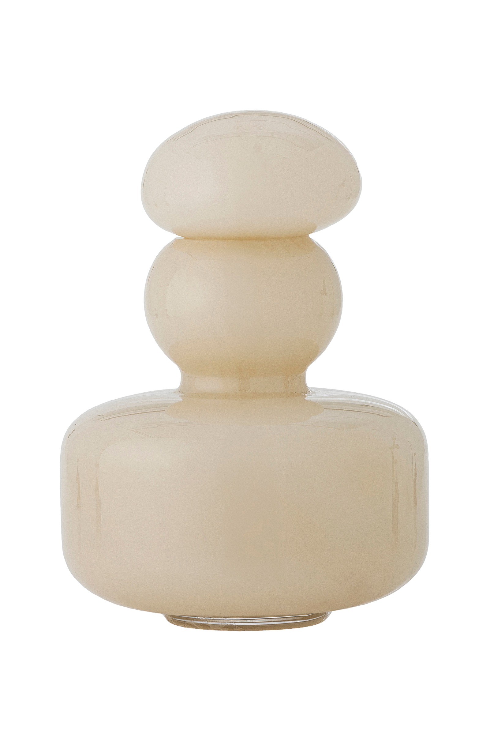 Cynthia vase fra bloomingville er en dekorativ glasvase med en blød, lagdelt silhuet. Vasen har et aftageligt låg, som nemt kan tages af, når der skal sættes en blomst i, og sættes på igen, når den kun skal bruges til dekoration. Det er mundblæst glas, så der kan forekomme små variationer i størrelse og udseende.