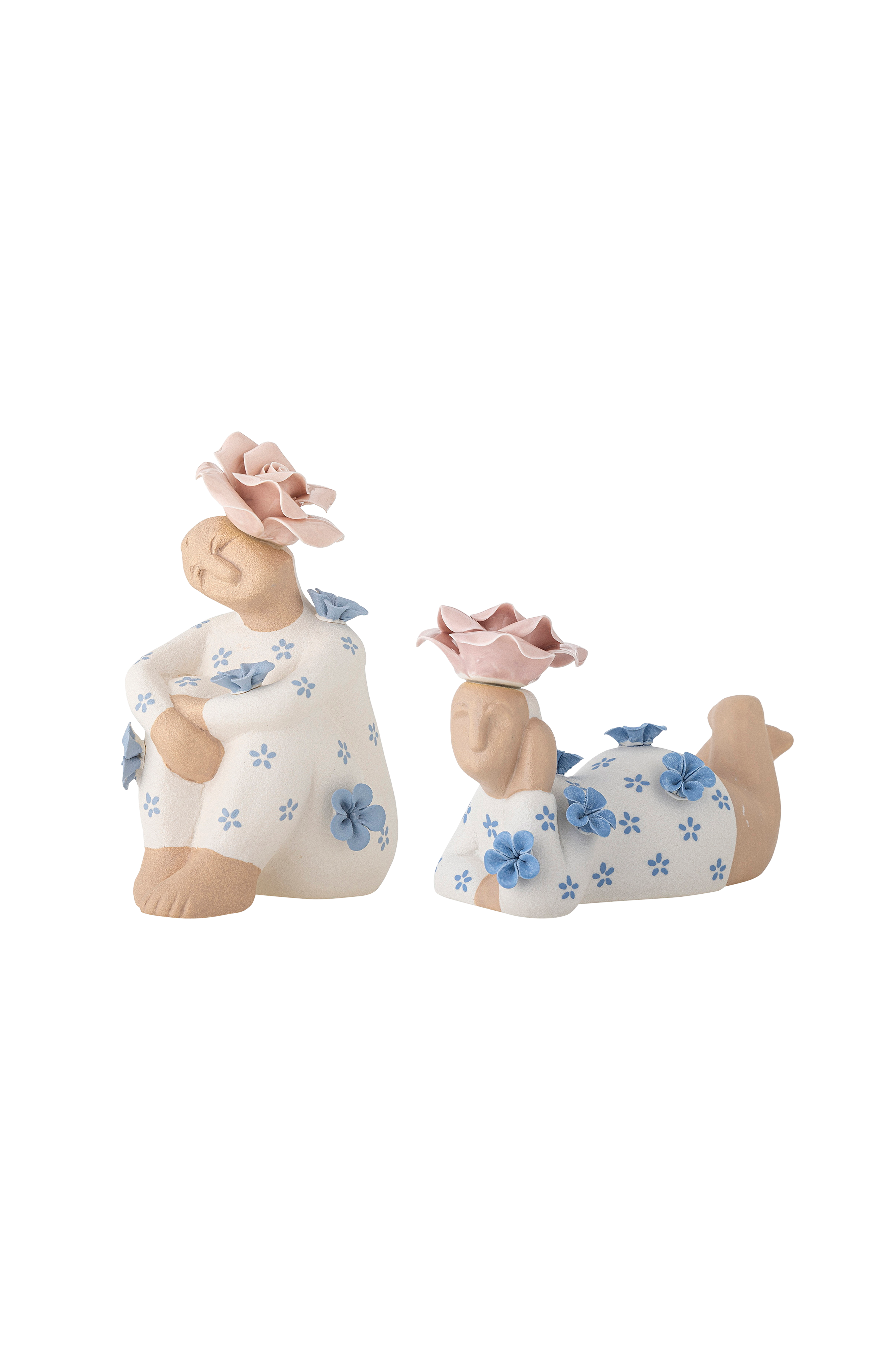 floriella deco fra bloomingville er et sæt med to charmerende figurer, der giver hjemmet et legende præg. De bløde kurver og lyse farver med blå og rosa blomstermotiver skaber et delikat look. Lad figurerne sætte kulør på din indretning, og placer dem sammen eller hver for sig på en hylde, kommode eller i vindueskarmen. Mål: l17xh11,5xw7,5/l13,5xh17xw9 cm, sæt med 2 stk.