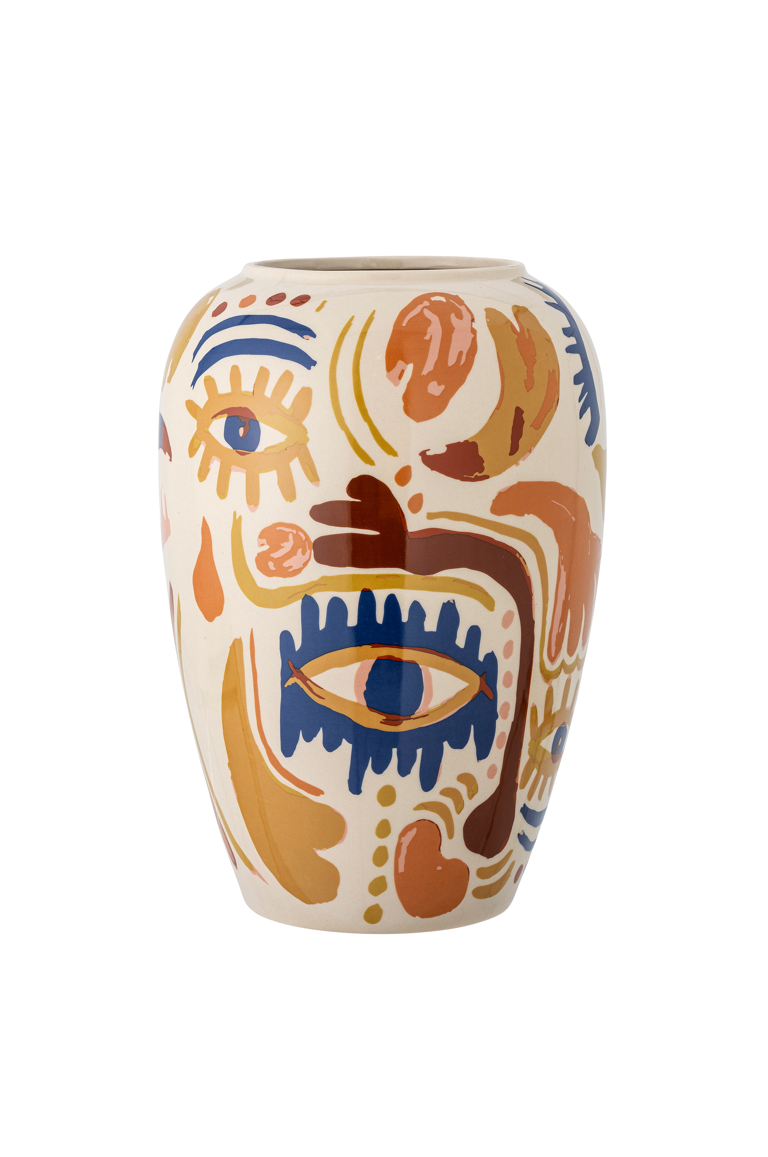 horus vasen fra bloomingville er smukt dekoreret med et udtryksfuldt motiv, der danner en harmonisk blanding af varme og kølige nuancer. Det kreative udtryk gør vasen til midtpunktet i ethvert miljø. Uanset om den rummer en frisk buket eller står alene, er den designet til at imponere. Dimension: d22xh32 cm