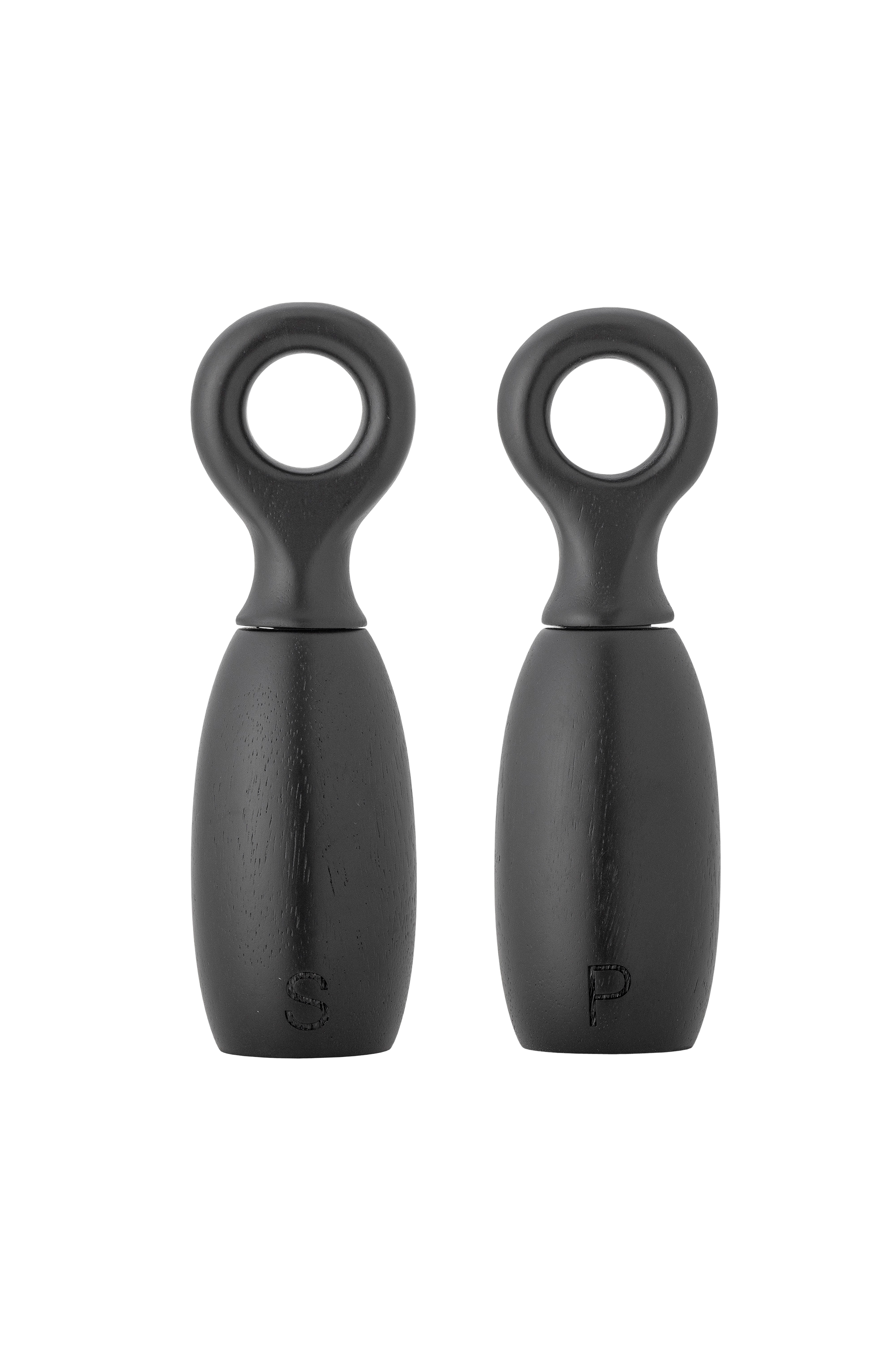 martim salt- og peberkværn fra bloomingville består af to kværne - en til salt og en til peber. Kværnene er lavet af sort gummitræ og har store, runde håndtag, som er lette at dreje. Hav kværnsættet stående på køkkenbordet, hvor du laver mad, eller tag dem med til spisebordet. Mål: d6,5xh21 cm, sæt