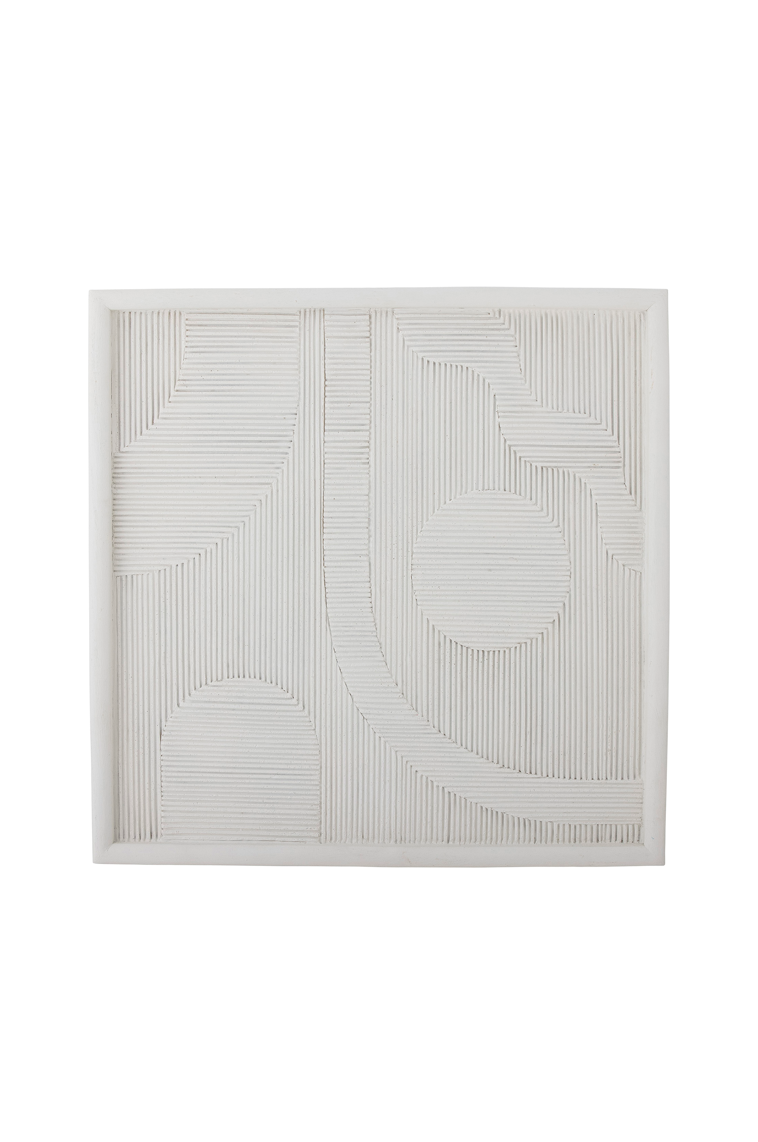 Vægdekorationen patina fra bloomingville er lavet af polyresin og har en smukt struktureret overflade. Dekorationen er hvid og prydet med et grafisk mønster, der tilføjer en kunstnerisk dimension til hjemmet. Miks og match patina vægdekorationen med andre vægdekorationer i rolige nuancer for at skabe en harmonisk og indbydende atmosfære. L42xh42xw3 cm