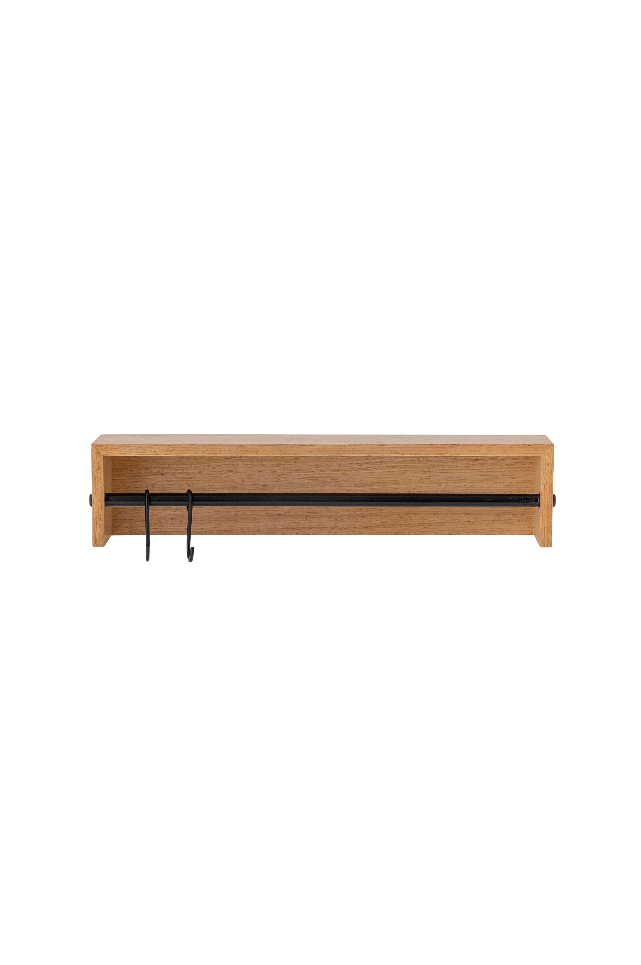 Hylden ryder fra bloomingville er designet med en varm, træfarvet overflade og en tværgående stang i sort metal. Brug de to medfølgende kroge til at hænge viskestykker eller dine yndlingskopper. På toppen af hylden kan du placere bøger eller krydderier og skabe en hyggelig og indbydende atmosfære i dit rum. Dimension: l46xh10xw11,5 cm