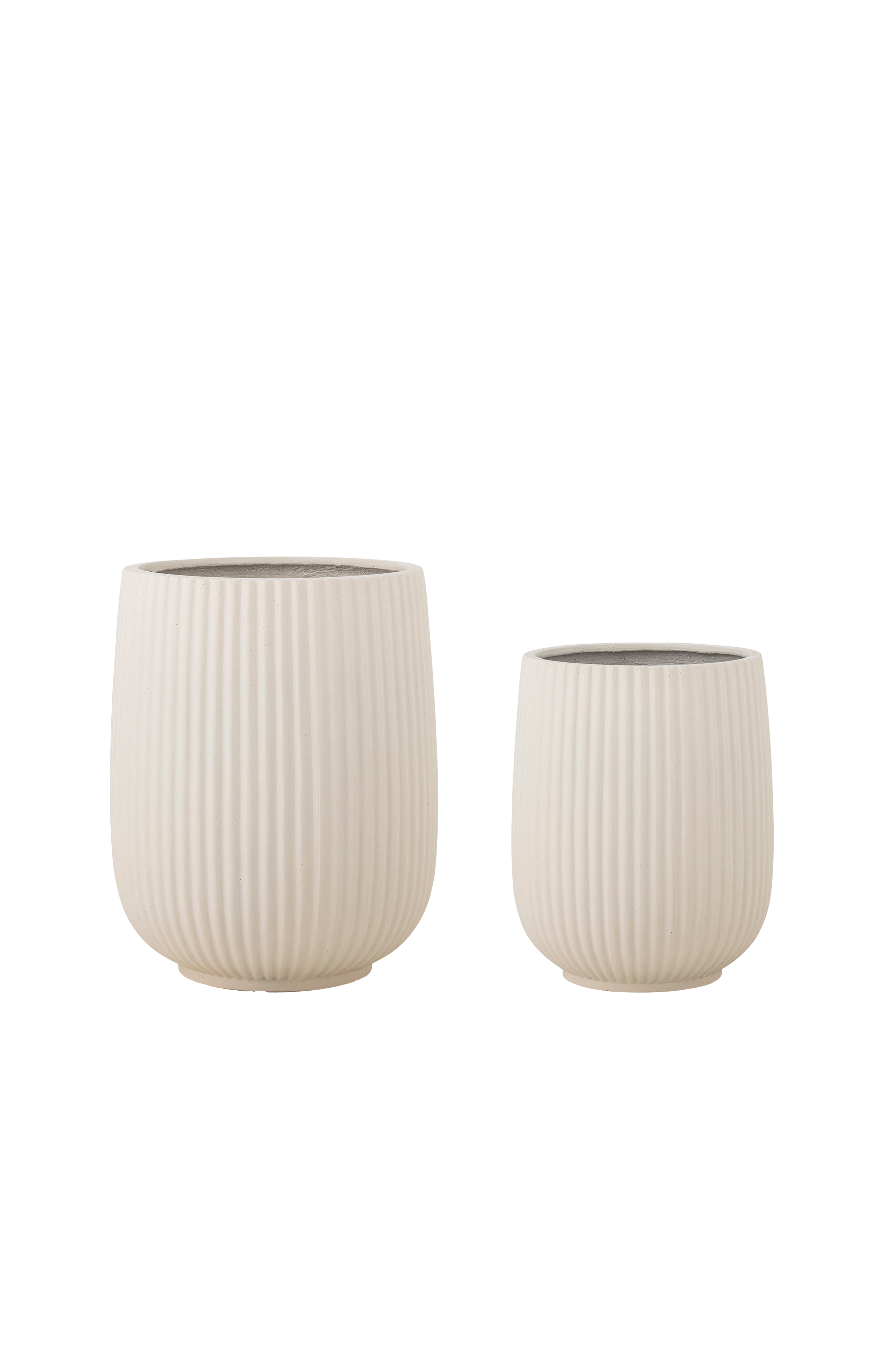 selva flowerpot fra bloomingville er et sæt med to elegante, lette covers i en cremehvid farve. Disse smukke og rummelige potter er perfekte til at skabe en rolig og harmonisk atmosfære både indendørs og udendørs. Med deres tidløse design passer de nemt ind i enhver indretning. Urtepotterne er testet til at modstå temperaturer fra -40 til +40 grader, hvilket gør dem både funktionelle og velegnede til forskellige klimaer. Mål: d36xh45/d45xh56 cm, sæt med 2 stk.