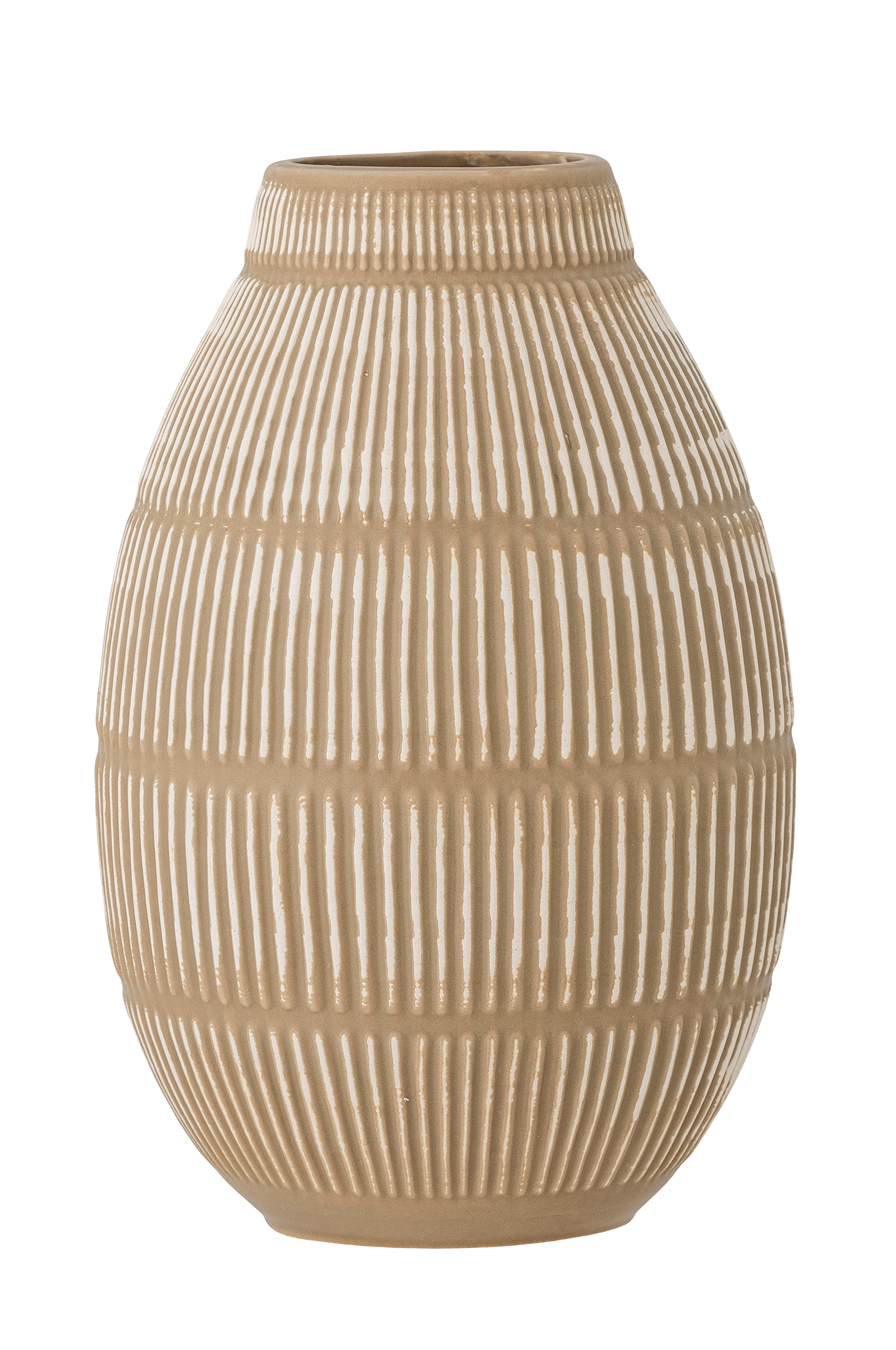 Aiva vase fra Creative Collection er lavet af stentøj og er håndmalet i lyse naturlige farver med et fint, præget mønster. Vasen er glaseret på indersiden og er klar til en smuk buket. Da de er håndmalede, er alle vaser forskellige og unikke.