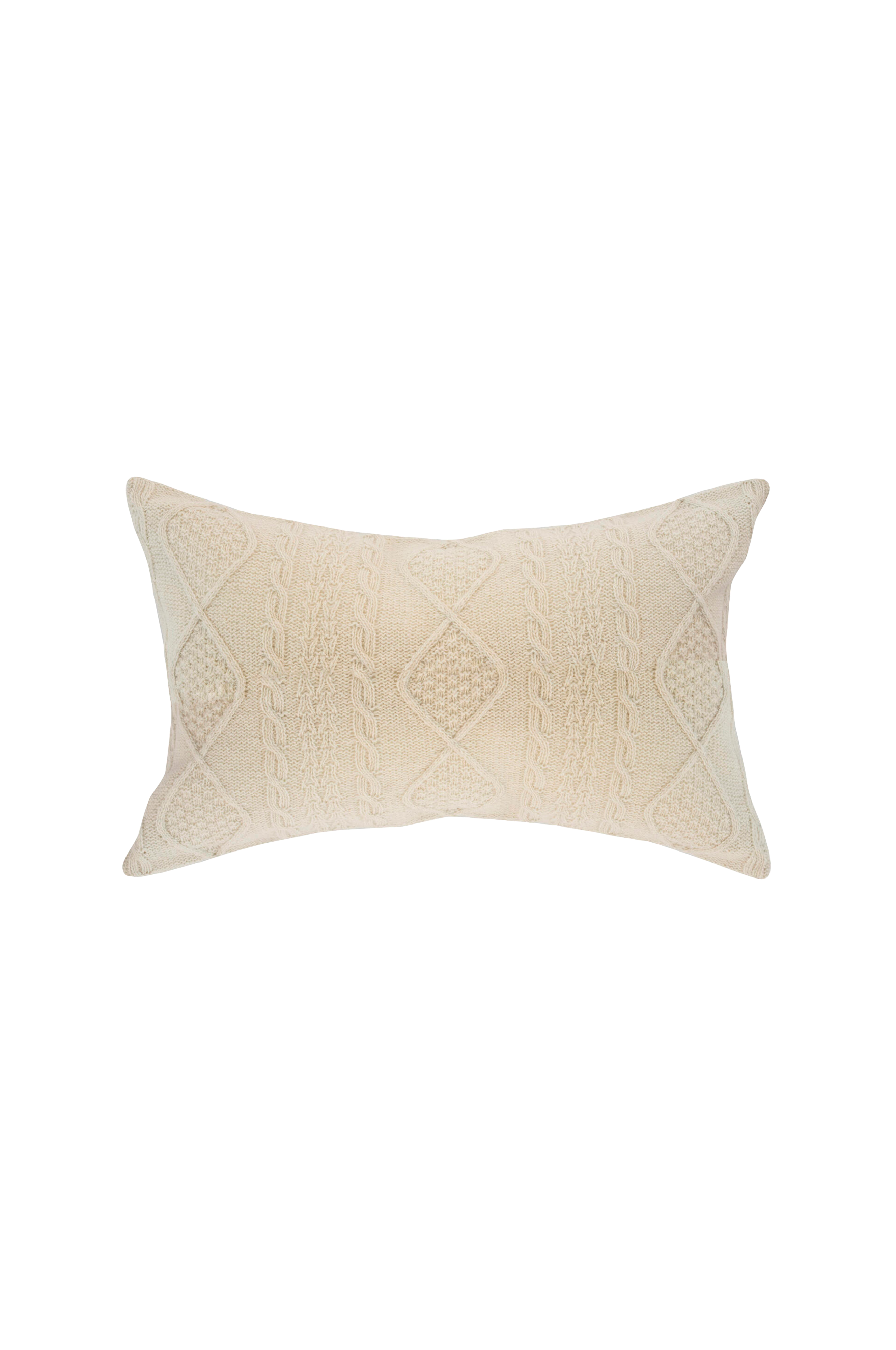 Pudebetræk i fint klassisk fletmønster. 65% uld og 35% andre fibre. Lynlåsåbning i bund.