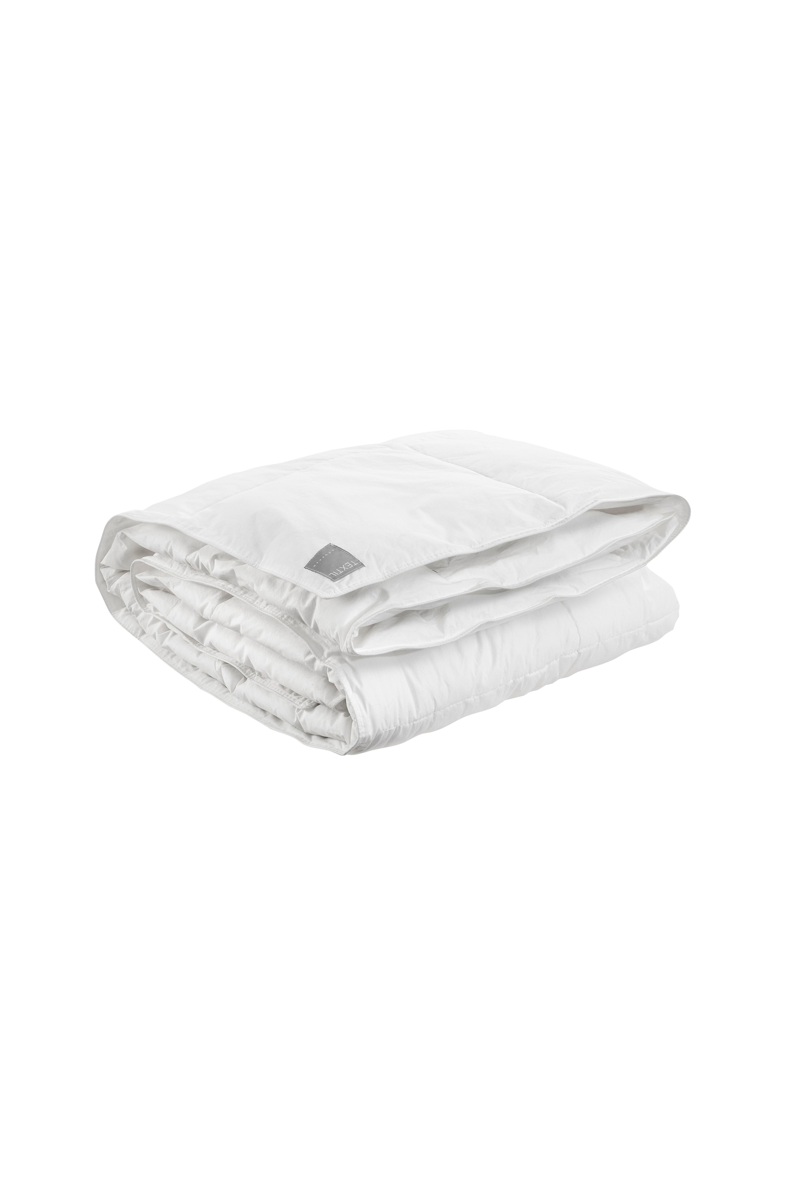 Tekstilgruppe-dynen til dobbeltseng er medium varm og lavet af slidstærkt bomuldscambric med hvid paspolering. Dynen er ternsyet og har fyld med 1050 gram hul- og microfiber, som giver fin volumen og den helt rigtige hotelfølelse. Dynen findes også til enkeltseng.