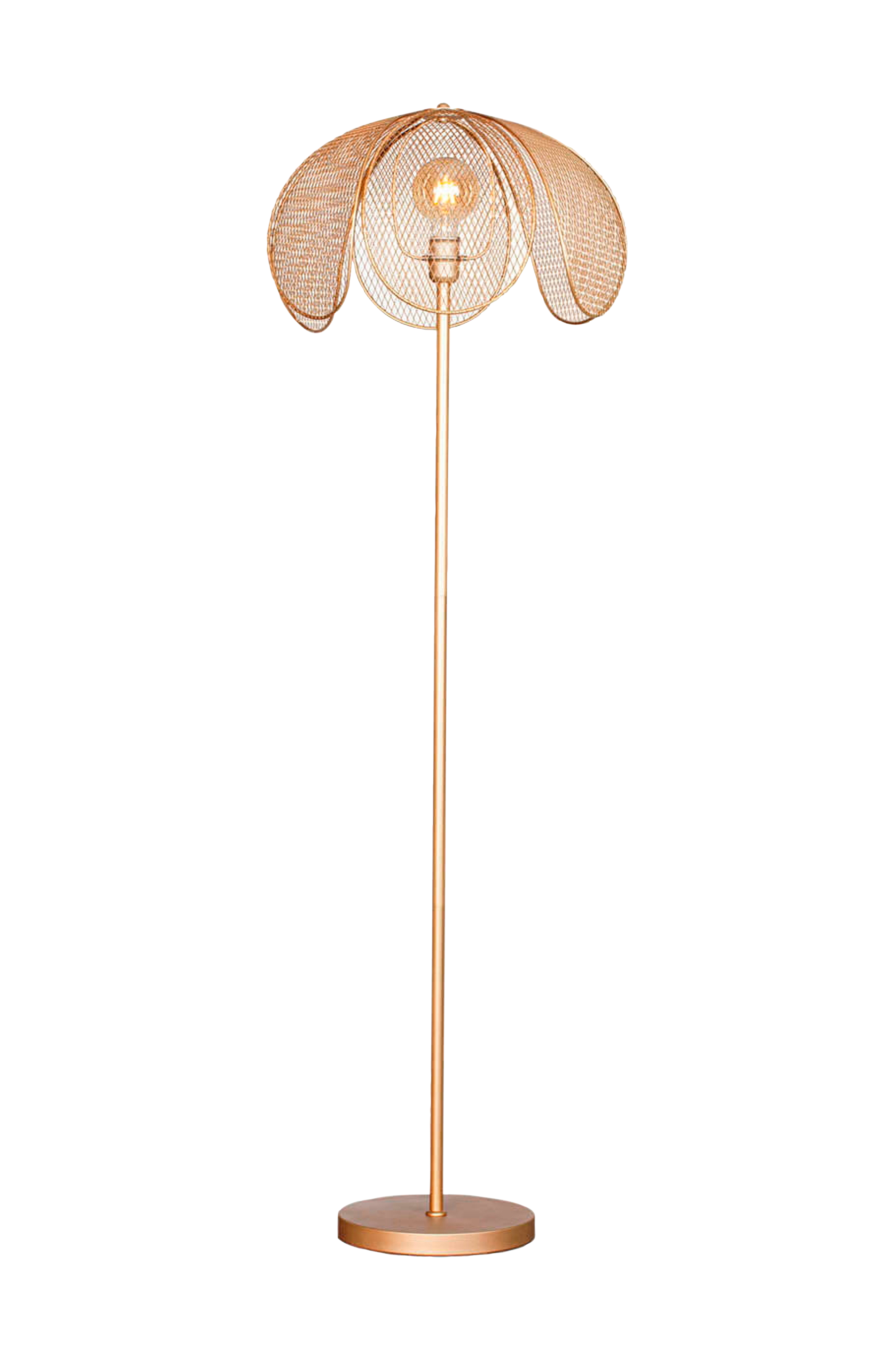 Gulvlampen Daisy har en lampeskærm, der ligner kronbladene på en blomst, og en udstanset skærm, som giver lyset en større chance for at sprede sig uden samtidig at overtage hele rummet. Daisy gulvlampe måler 50 cm i diameter og har en højde på 160 cm. Lampens lange ledning på 250 cm giver flere valgmuligheder ved placering af lampen alt efter hvor du har din stikkontakt, du finder strømafbryderen på ledningen.