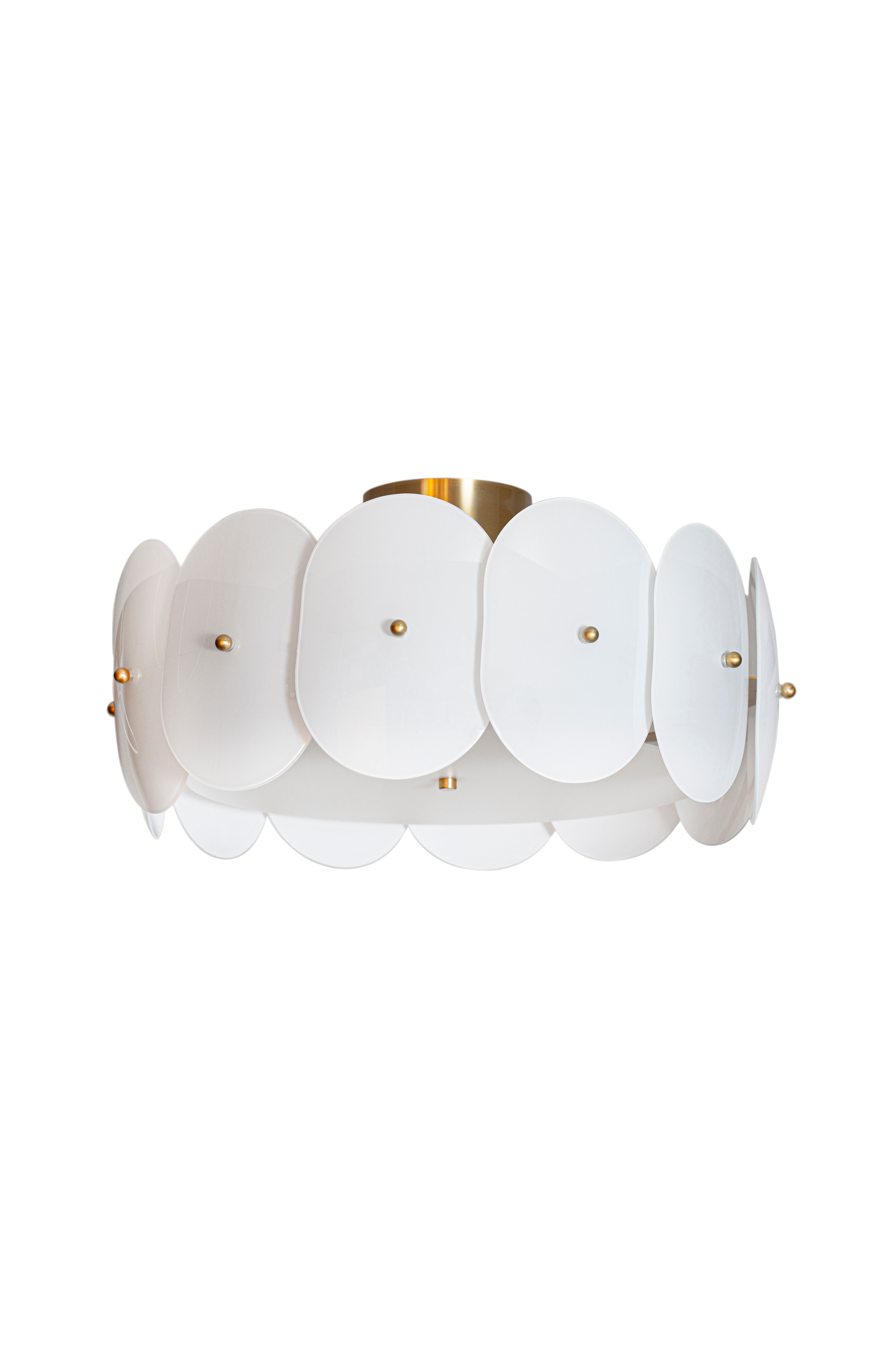 Omlott loftslampe, designet af den anerkendte mia lagerman, er en eksklusiv og dekorativ lampe, der virkelig skiller sig ud med sin unikke form og udtryk. Det runde, elegante design i blankt hvidt glas skaber et blødt og behageligt lys, der er perfekt til at gøre din indretning til noget helt særligt. De smukke messingknopper tilføjer et sofistikeret og stilfuldt touch og gør *omlott* til en iøjnefaldende detalje i dit hjem. Denne loftslampe passer perfekt i både moderne og klassiske omgivelser.