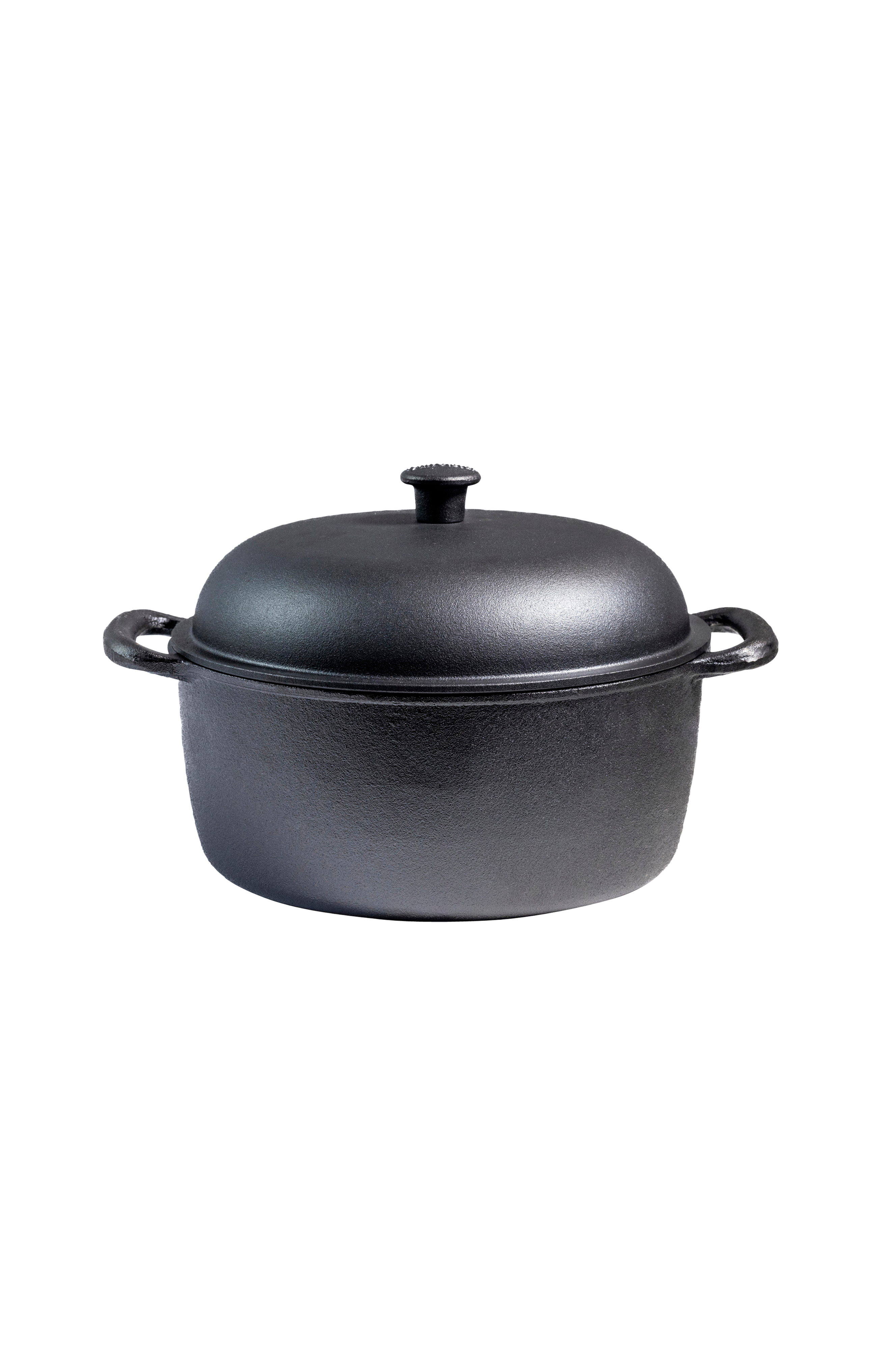 Gryde i støbejern med støbejernslåg og to håndtag. Denne gryde giver fremragende tilberedning, optimal varmeledning og en holdbar overflade. Selv den naturlige non-stick-effekt, der udvikler sig over tid uden nogen kemisk belægning, værdsættes af kokke verden over. Hvert Carl Victor-produkt er fremstillet i hånden og derefter brændt med vegetabilsk olie, hvilket gør det klar til øjeblikkelig brug.