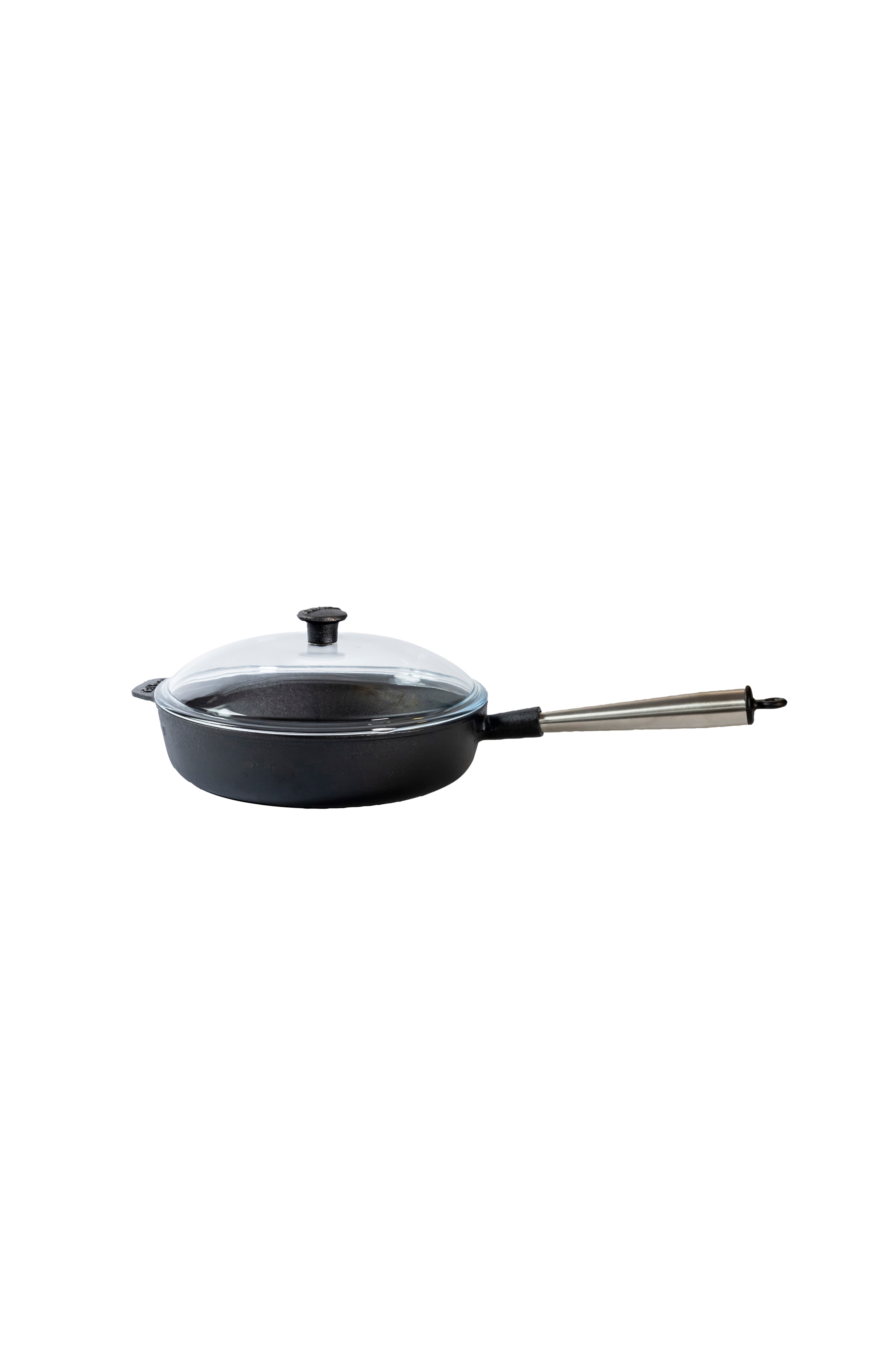 Sautérpande i støbejern med glaslåg fra Carl Victor. Panden fordeler varmen rigtig godt, takket være støbejernets gode varmeegenskaber, til jævnt tilberedt mad. Carl Victors støbejernsprodukter er fremstillet af strengt kontrolleret, genanvendeligt jern.