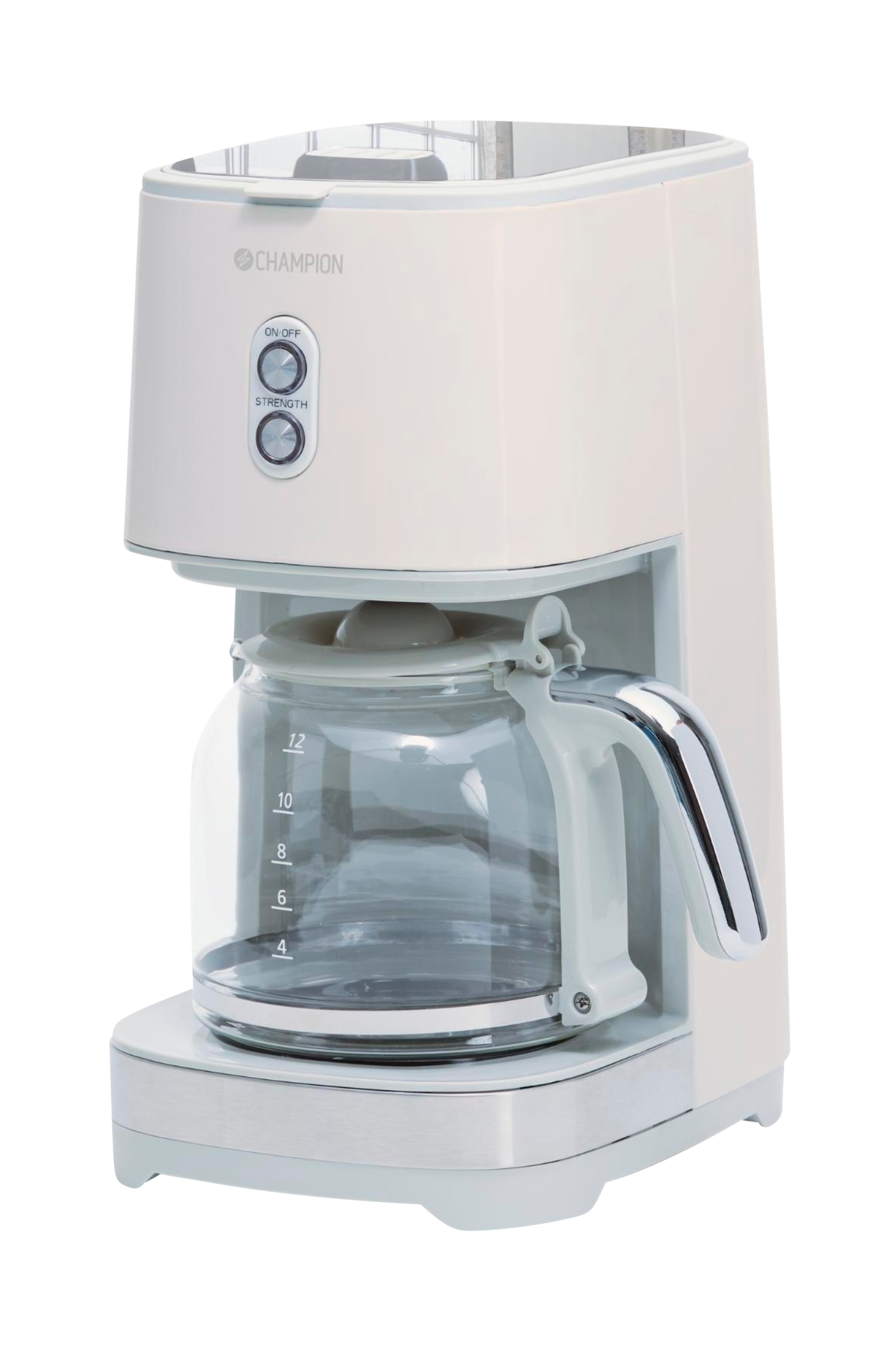 Champions kaffemaskine i stilfuldt retrodesign brygger 12 kopper perfekt kaffe pr. brygning, og du kan nemt selv indstille styrkegraden. Udstyret med varmholdning, automatisk sluk og anti-drypfunktion, der gør den nem og sikker at bruge.