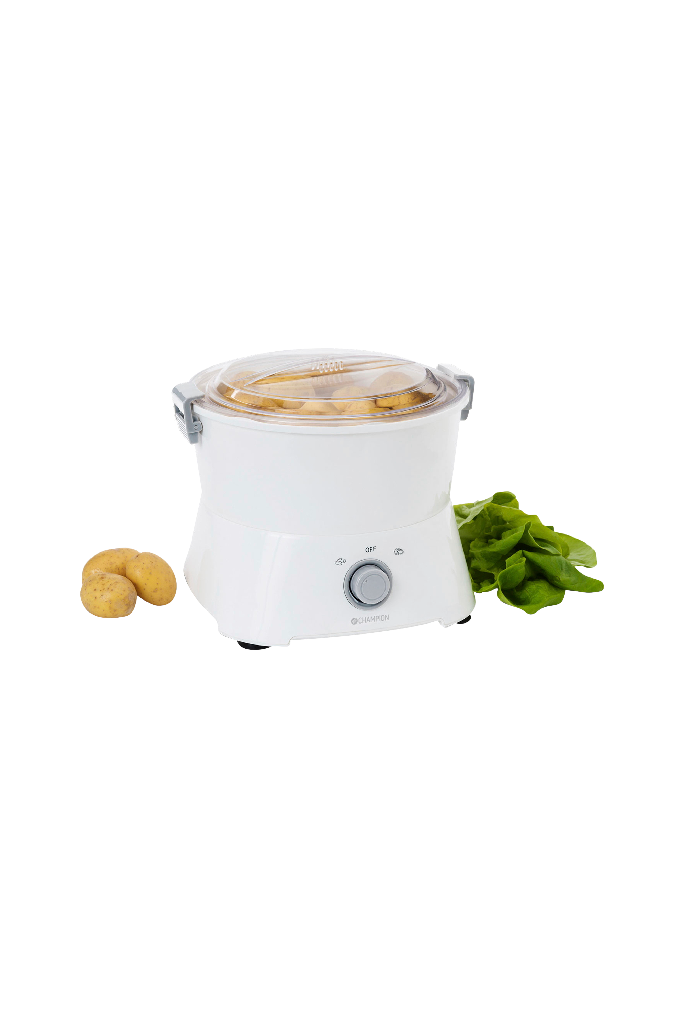 Med Champions elektriske kartoffelskræller PS110 skræller du hurtigt og nemt op til 1 kg kartofler ad gangen - på få minutter! Vælg mellem at skrælle kartofler, gulerødder, æbler eller brug den medfølgende indsats til at slynge din salat tør på ingen tid. Champions kartoffelskræller er energivenlig og arbejder støjsvagt, og gennem det transparente låg kan du nemt følge skrælningen for at sikre et perfekt resultat.