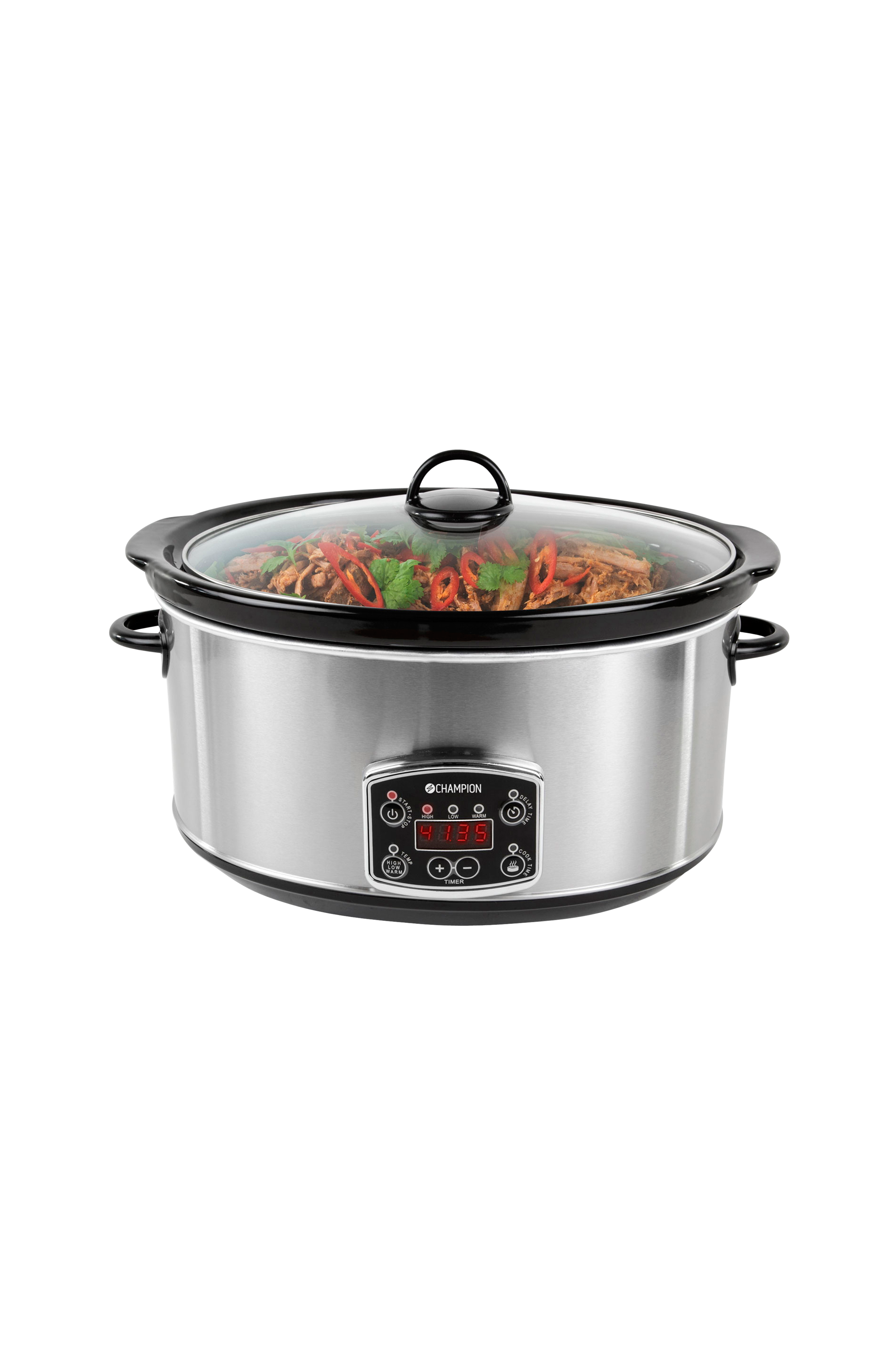 Det er utroligt let at lave mad i en slowcooker. Du behøver ikke at være nogen mesterkok for at det går godt i køkkenet, når du har en Champion CHSC110 ved hånden. Læg dine ingredienser i gryden, start varmen og derefter kan du lade slowcookeren gøre arbejdet, mens du bruger tid på noget andet. Champion CHSC110 har også programmerbar starttid, hvilket betyder, at du kan bestemme hvornår tilberedningen skal starte.