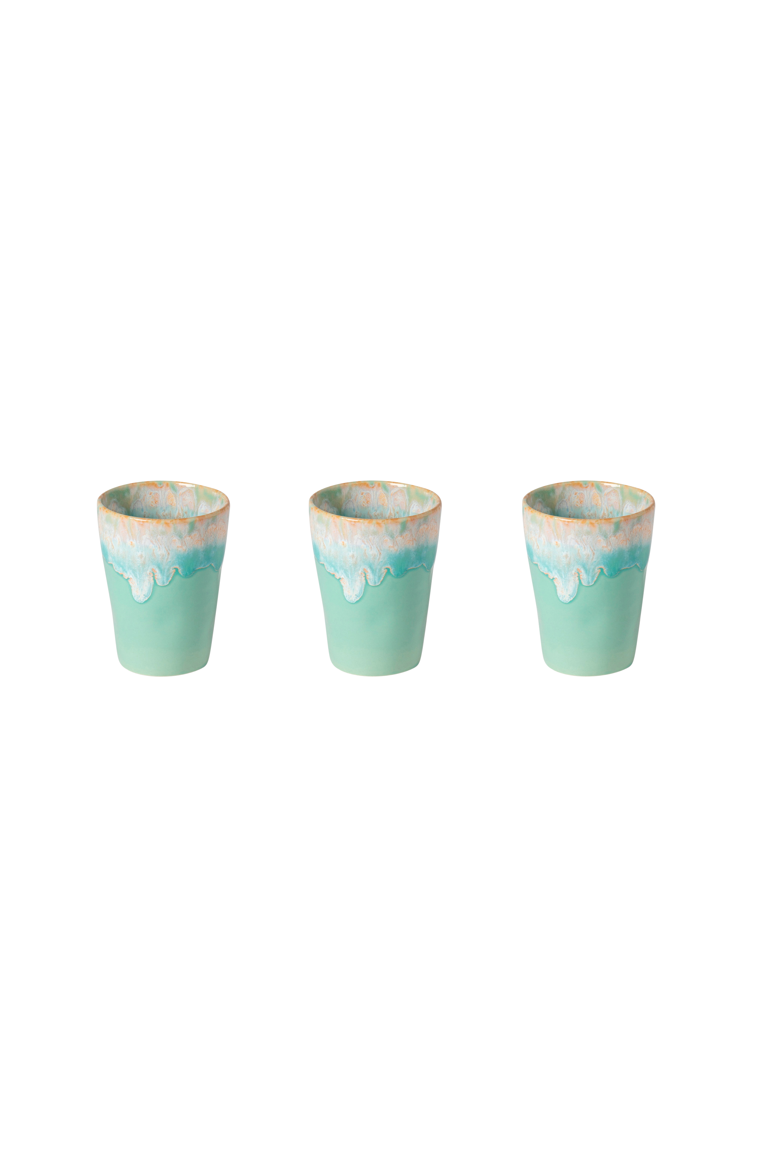 Sæt med 3st smukke lattemuggar fra portugisiska costa nova i serien grespresso. Tillverkad av stengods med stenhård glasering i portugal. Godkendt til både diskmaskiner og mikro. Findes i bred serie med muggar, espressomuggar og lattemuggar.