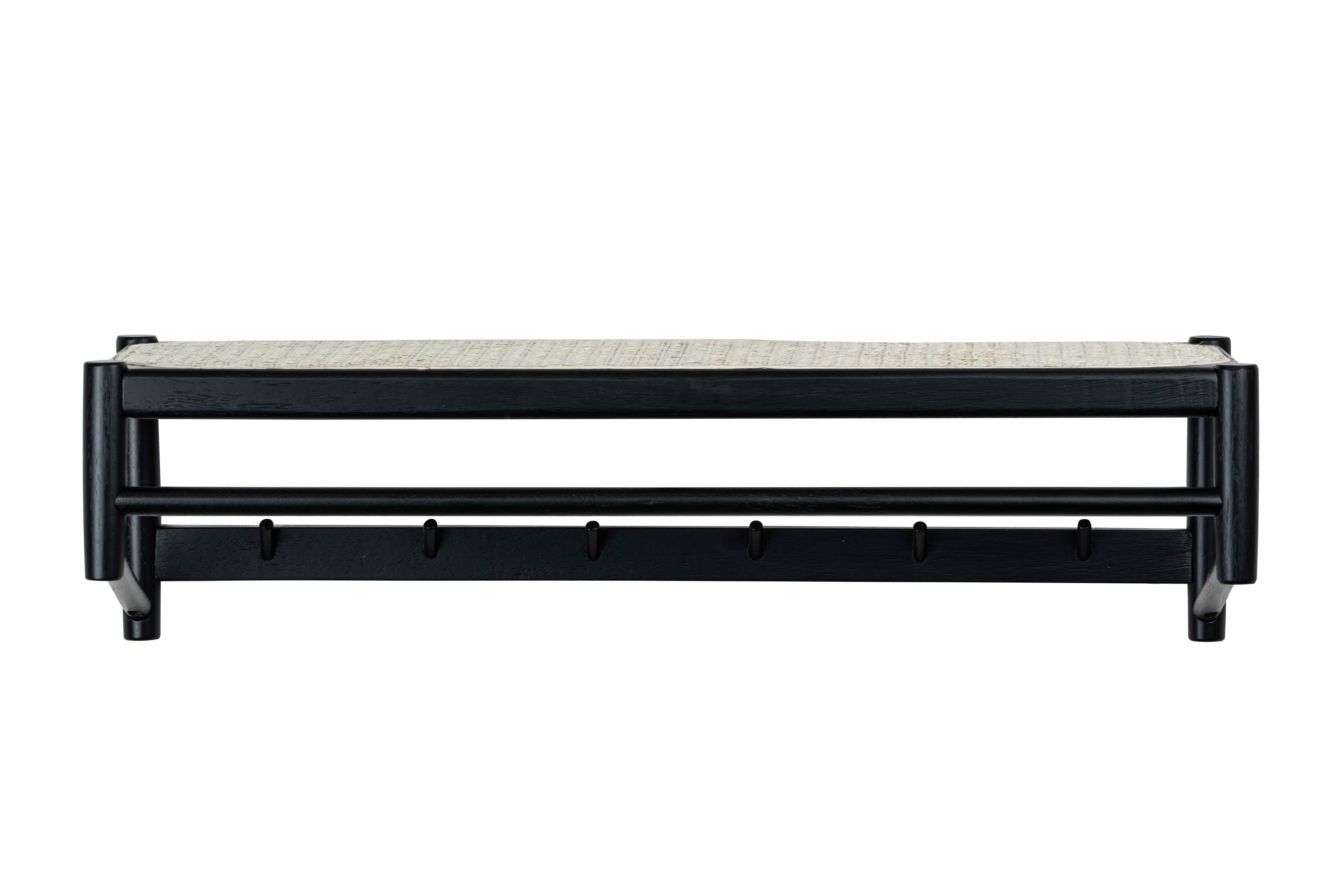 Hattehylde i massiv eg og rotting. 6 knager samt bøjlestang.