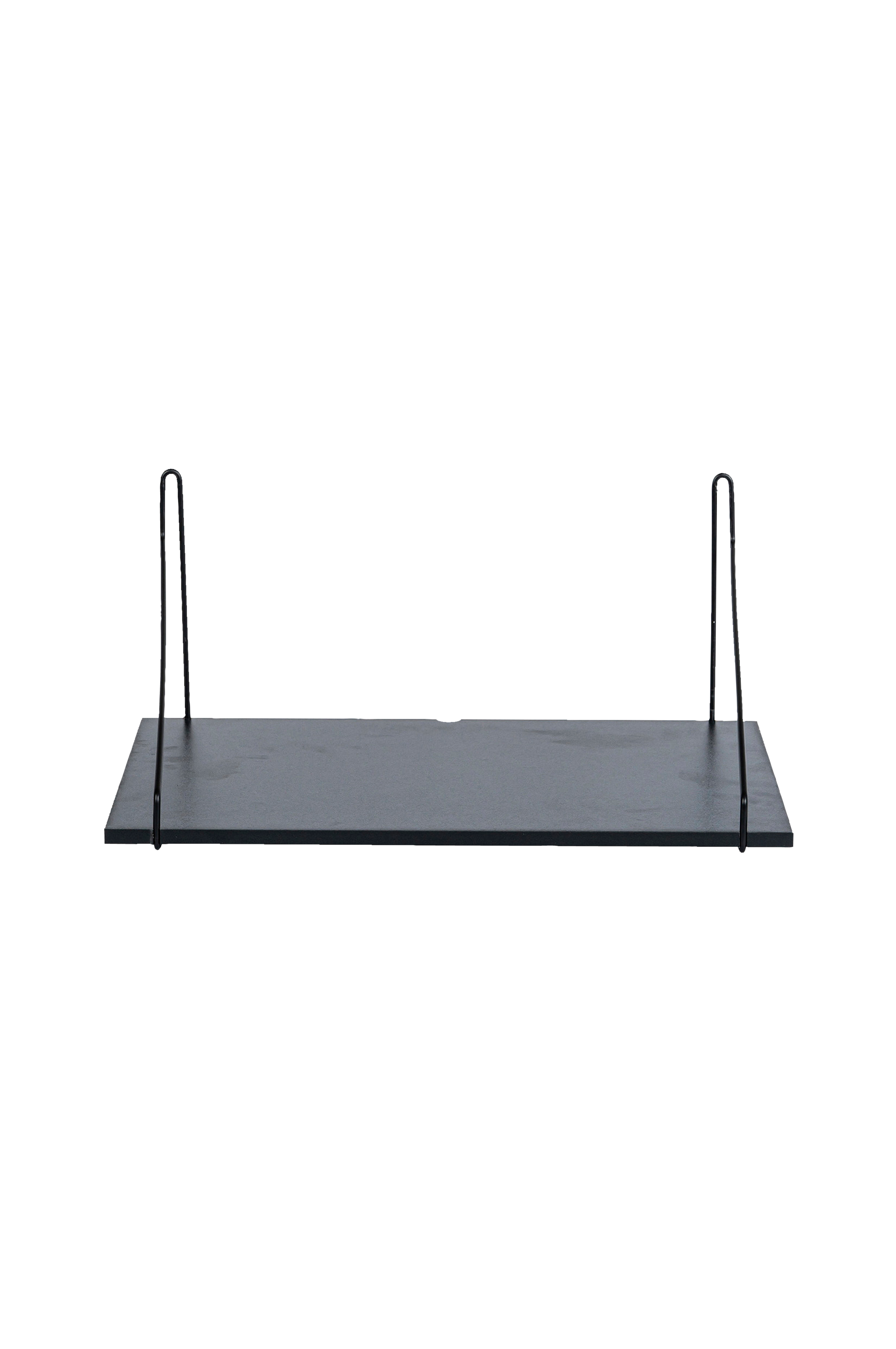 Væghylde med 1 hylde i melamin og konsol i metal, hylden er 40 cm bred og 26 cm dyb.