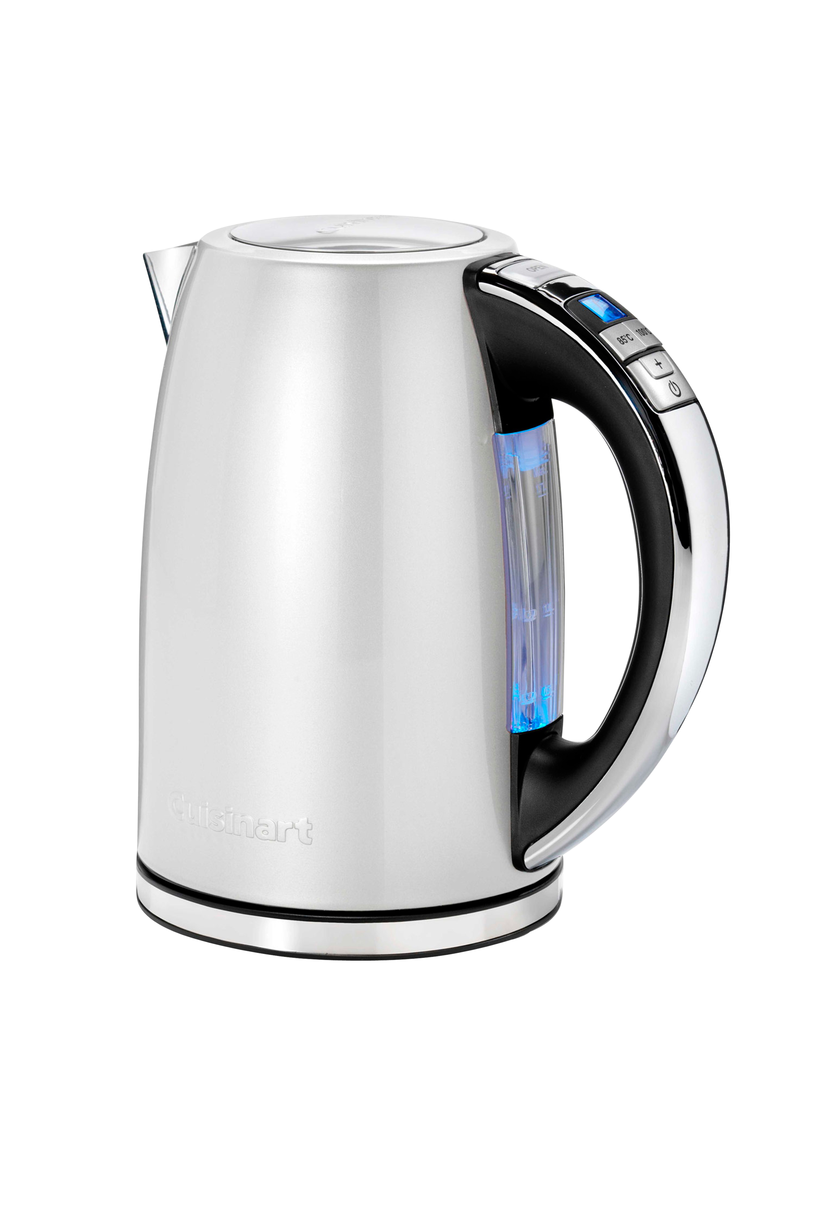 "Cuisinart Multi Temp Jug Kettle har et udvalg af temperaturindstillinger, der kan justeres i trin på 5 °C med knapperne på håndtaget.