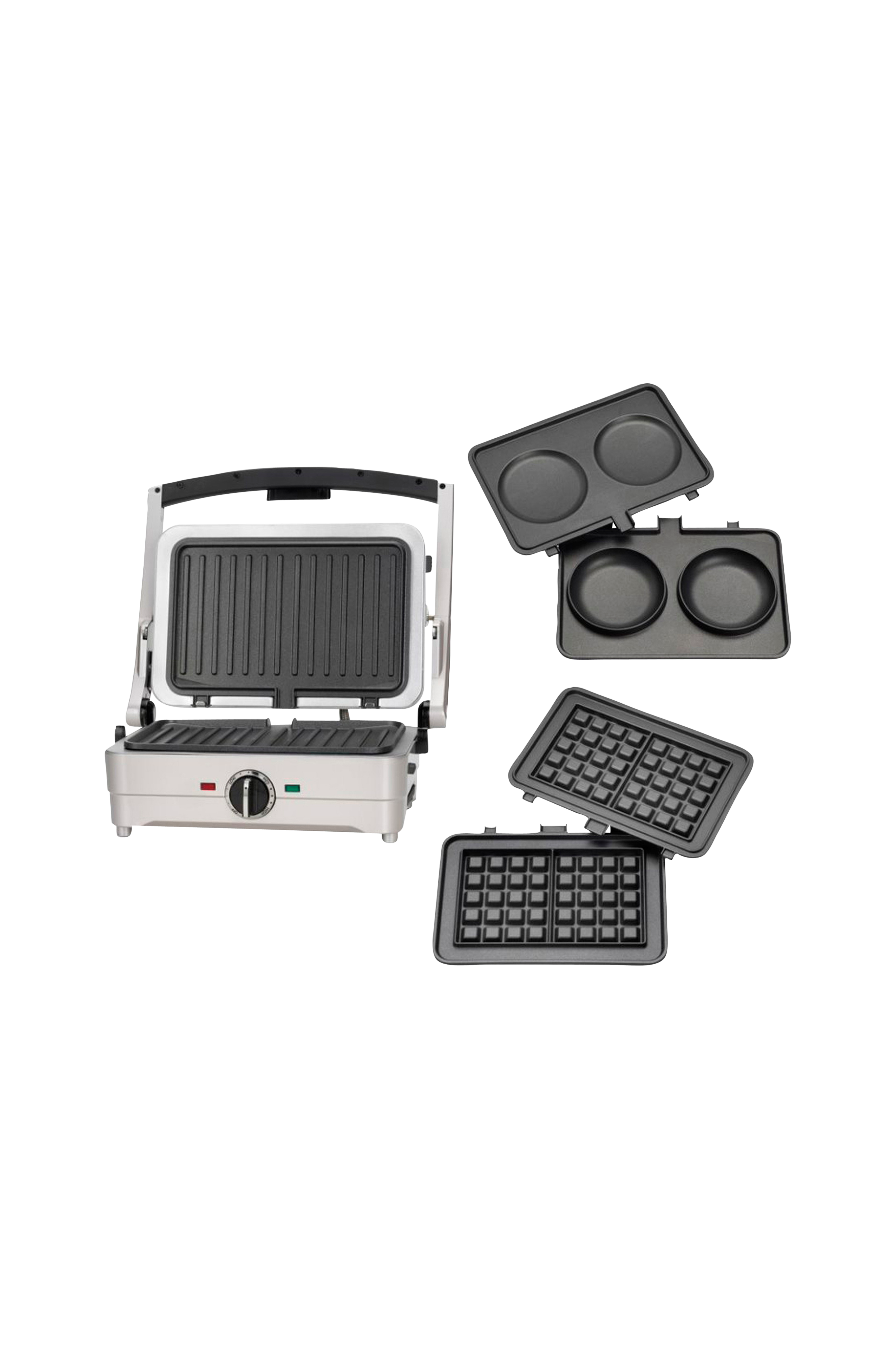 - Udskiftelige grill-, vaffel- og omeletplader med nonstick-belægning, der tåler opvaskemaskine.