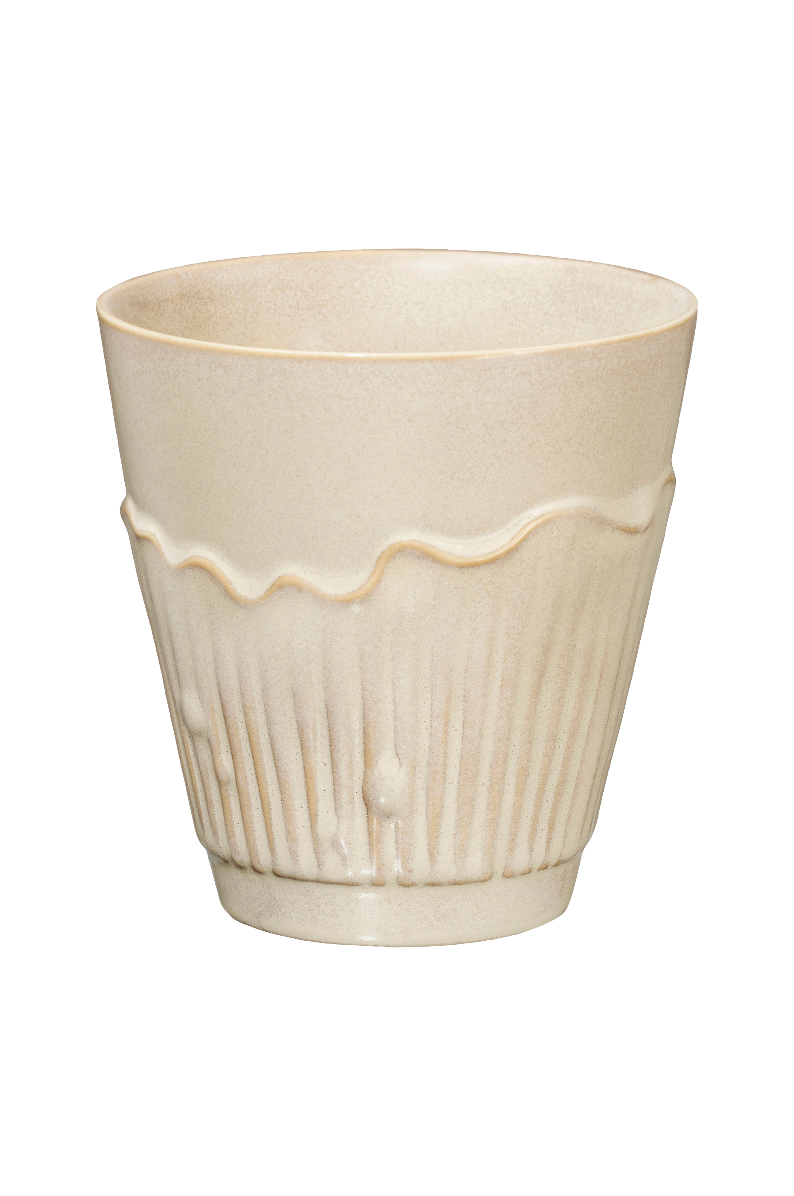 Kaffekrus i smuk reaktiv glasur med reliefmønster. Fremstillet af holdbart stentøj. Designet af Maria Söderberg