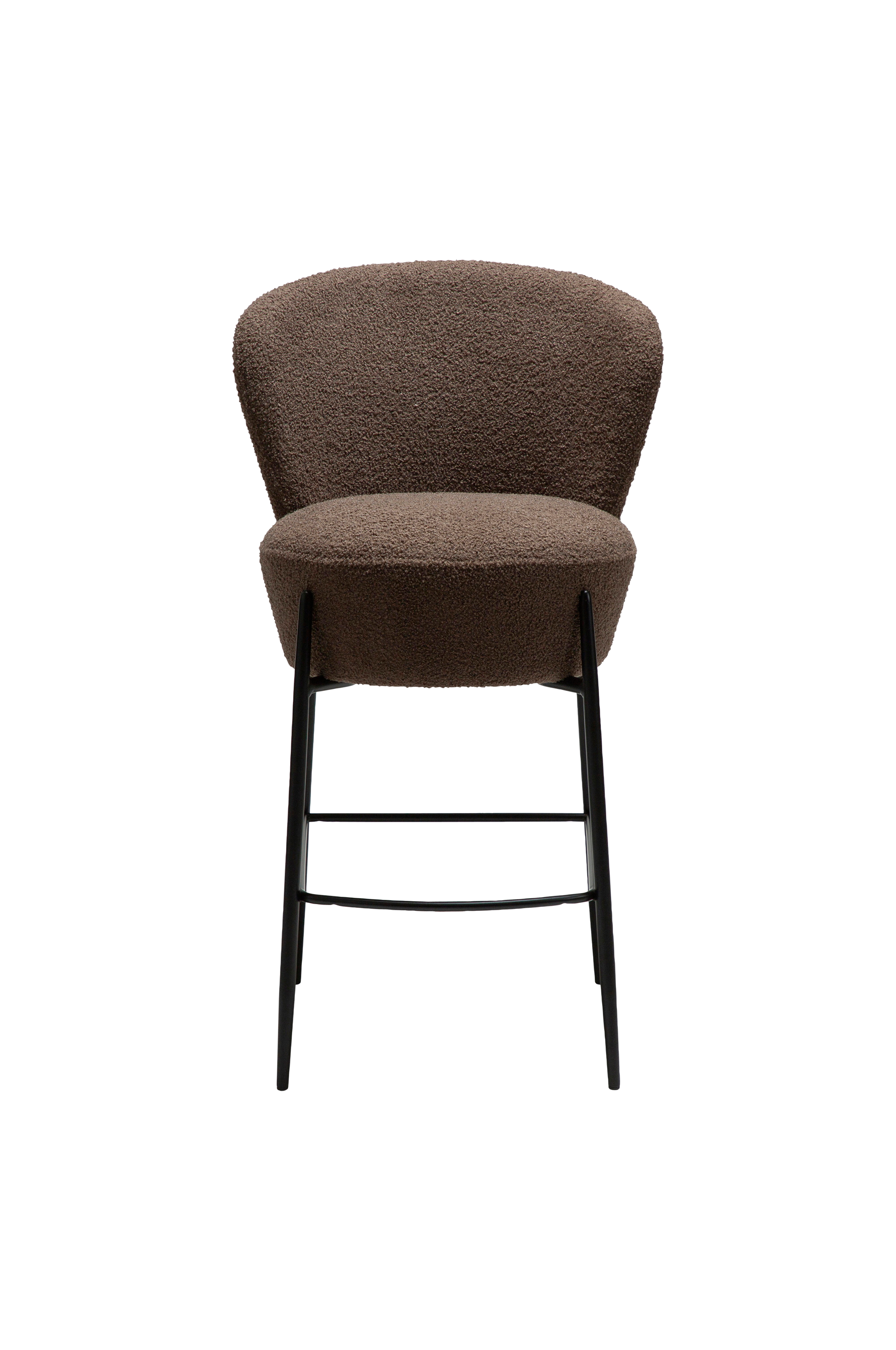 orbit counter stool har et karakteristisk og luksuriøst udseende med et rundt, plysbetrukket sæde og en ryg, der går hele vejen rundt. Det elegante design fremhæves af de koniske ben, som tilføjer et strejf af raffinement og løfter designet. orbit barstolene er en stilfuld tilføjelse til enhver bar eller ethvert køkken. Kollektionen orbit består af stole, bordskamler, loungestole og fodskamler.