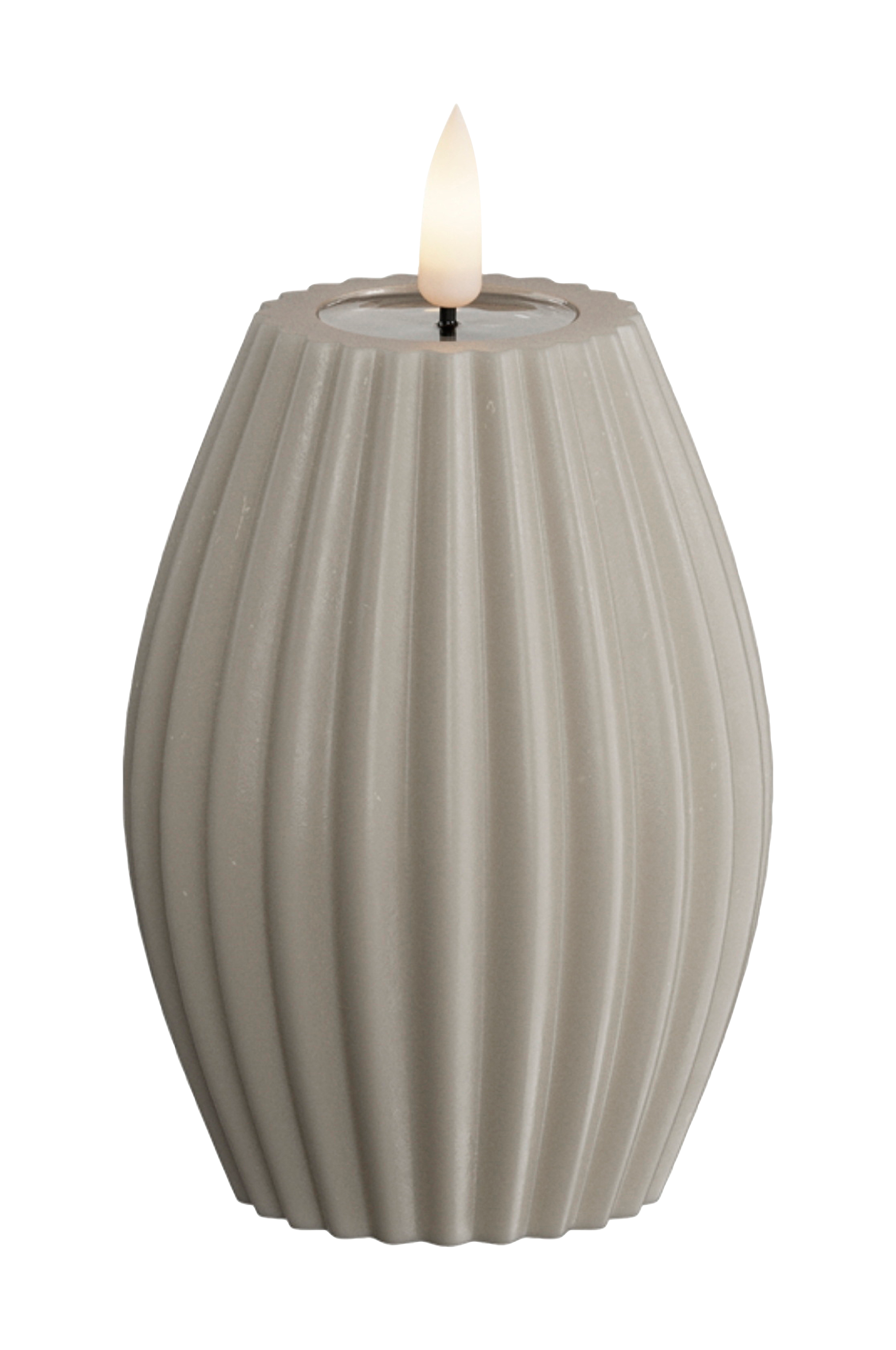 Giv dit hjem et stilfuldt og varmt lys med dette led-bloklys med en elegant riflet overflade. Lyset er fremstillet af paraffin og harpiks og giver både sikkerhed og holdbarhed og spreder en smuk glød uden at skulle bekymre sig om åbne flammer.