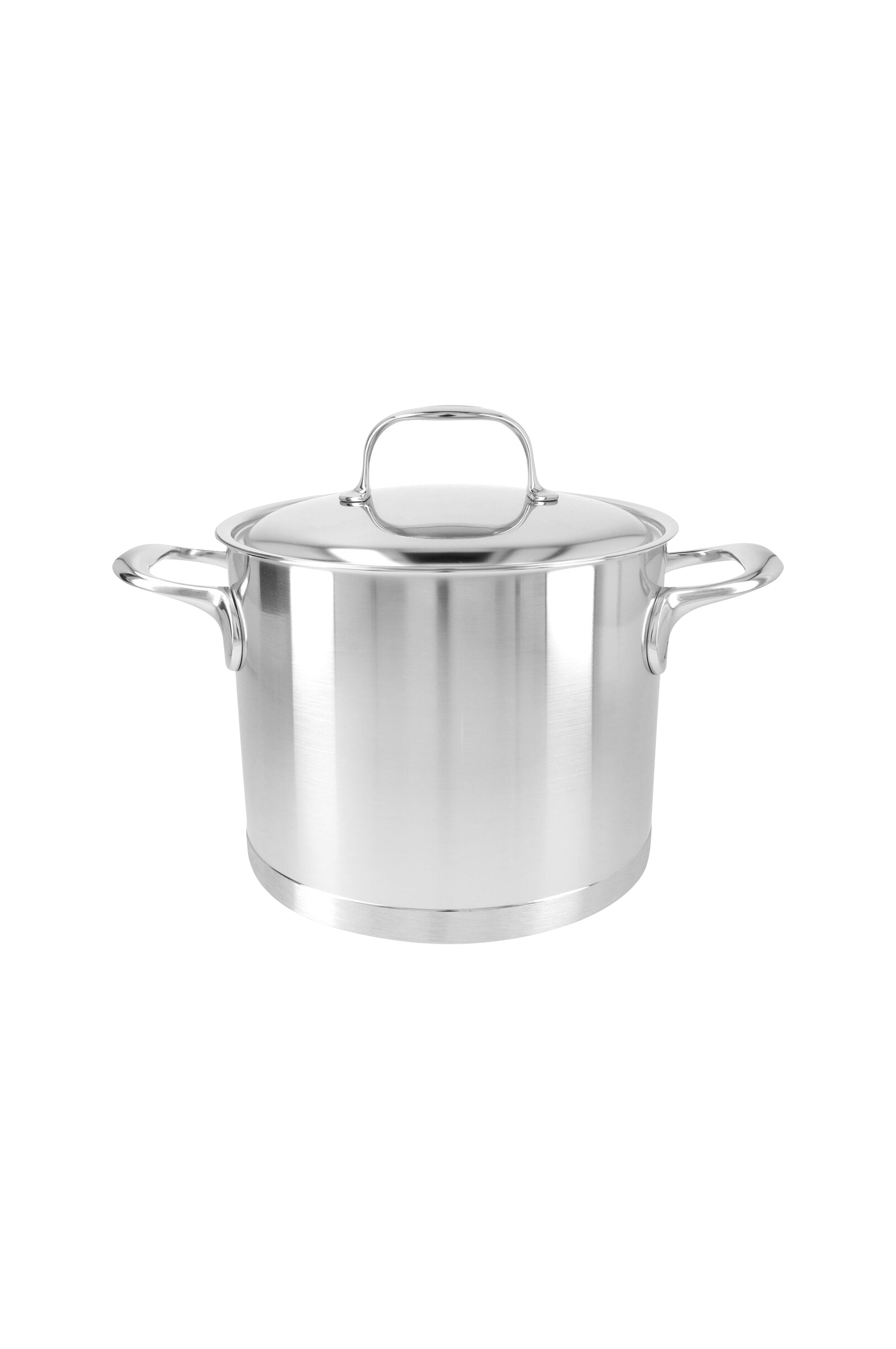 Høj suppegryde af rustfrit stål med låg. Diameter 20 cm, volumen 5 l. Velegnet til alle typer af komfurer og suveræn på induktion, hvor du desuden sparer op til 30% energi. Takket være den eksklusive TriplInduc®-teknik skal du kun bruge et minimum af energi til at generer varme, og du har optimal kontrol over temperaturen. InductoSeal®-bund med kobberkerne, som spreder varmen perfekt, selv på lav varme. Overgangen mellem gryde og bund er hermetisk svejset på siden, let at rengøre og superhygiejnisk. Gryden kan også komme i opvaskemaskinen. Med den specielle hældekant kan du hælde suppen op uden at spilde. Hanke i rustfrit stål og et perfekt tilpasset låg. Det rustfri stål med Silvinox® misfarver ikke og er let at gøre rent.