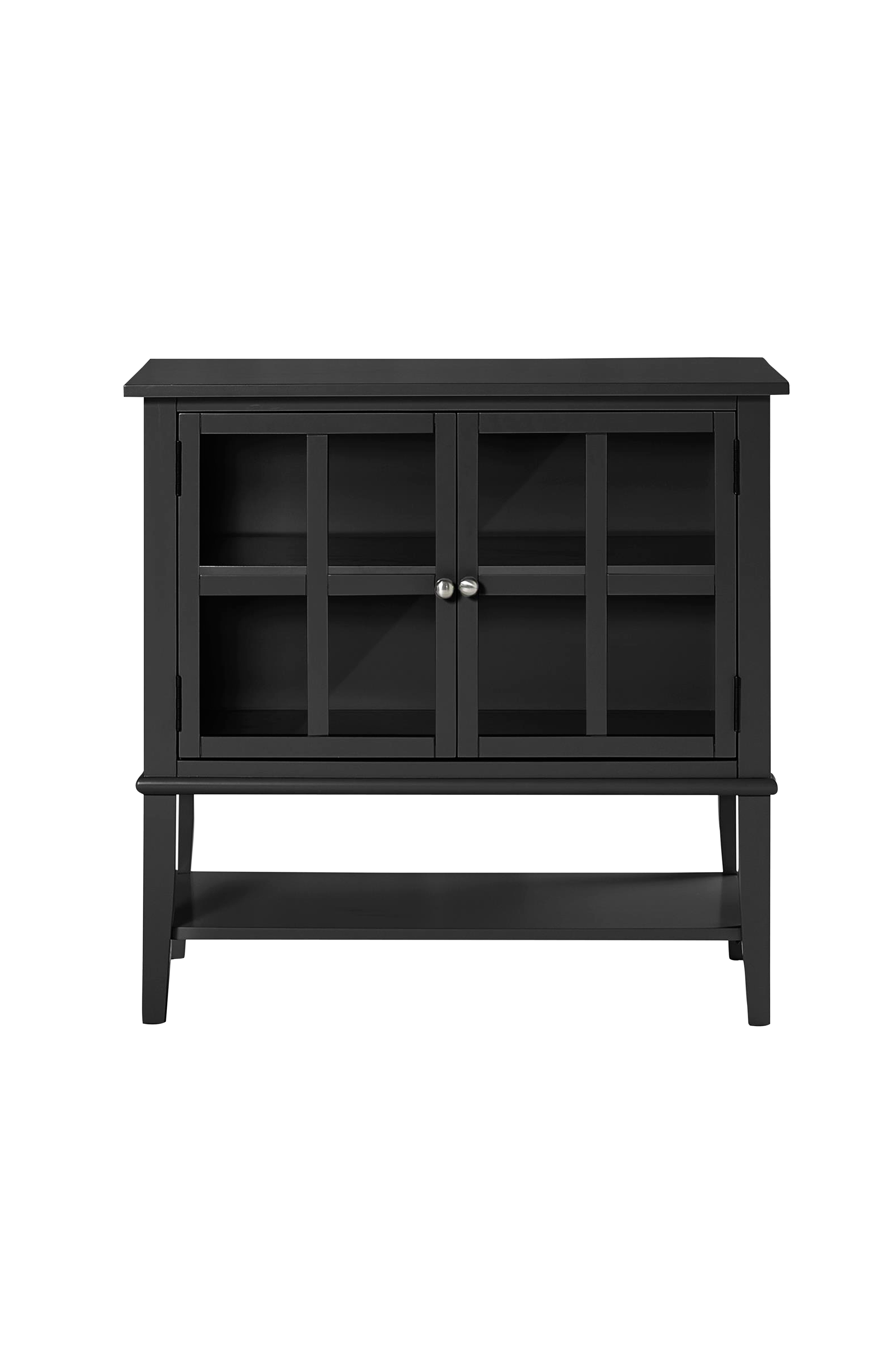 Få ekstra opbevaring med skabet Franklin 2 Door Store Cabinet. Skabet er fremstillet af malet MDF og har ben i massiv træ, og takket være den neutrale finish passer det nemt ind i din eksisterende indretning. De to glaslåger er dekorative og har justerbare hængsler. De smukke lister og tilspidsede ben skaber et elegant look, der vil opgradere din stue med et snuptag. Ovenpå skabet kan du placere fotografier og dekorationer, og den åbne hylde i bunden giver ekstra opbevaringsplads. De to hylder (hvoraf den ene er justerbar) inde i skabet rummer brætspil, tæpper eller sengetøj. Skabet kan også bruges som en lille skænk, hvor du opbevarer service, bestik og glas. Kun din kreativitet sætter grænserne! Skabet leveres i en flad pakke og skal samles. Vi anbefaler, at to voksne samler produktet.