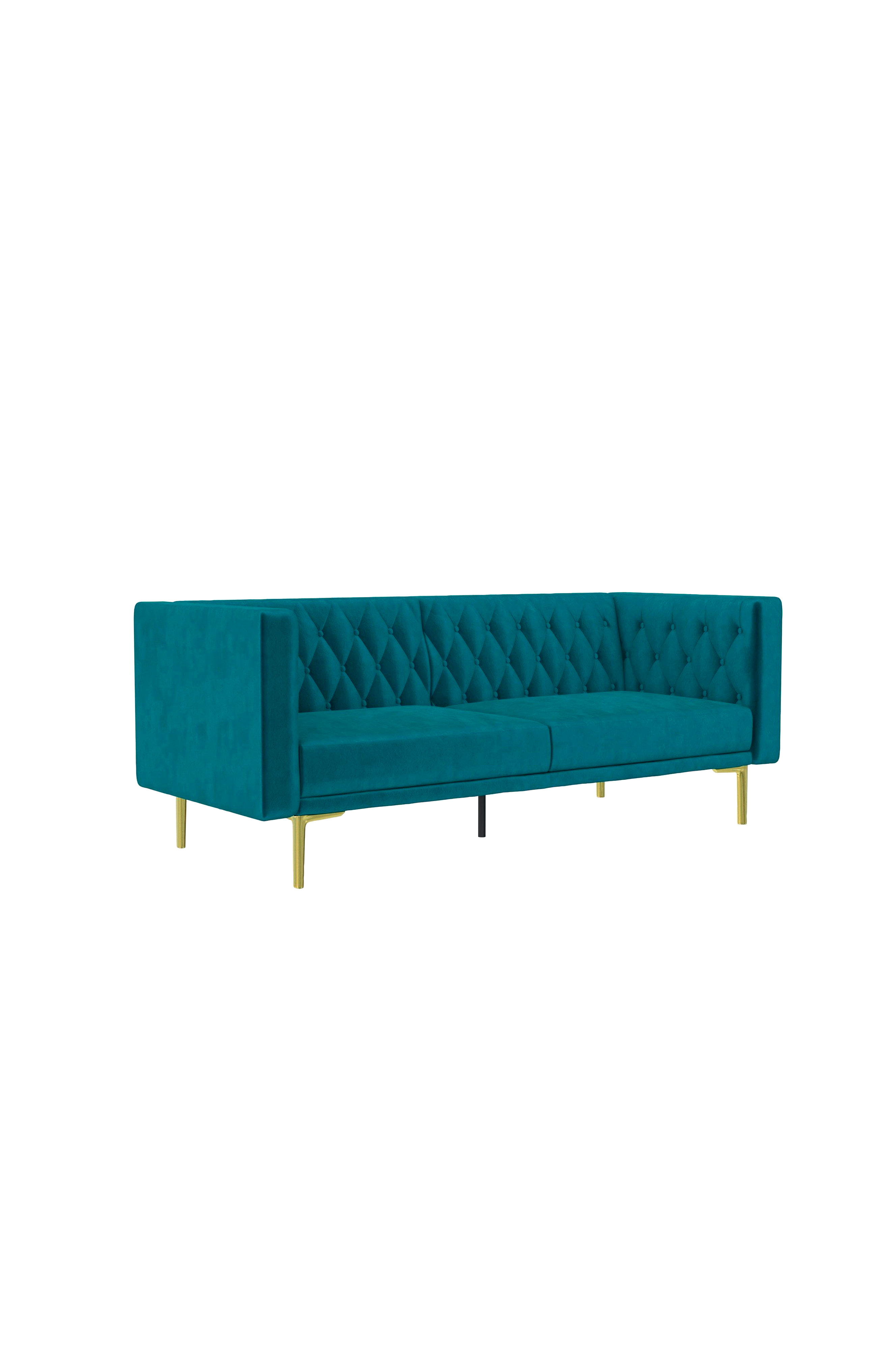 Luksus 3-personers sofa i moderne stil. Med fløjlsbeklædning, dybe diamantknapper på ryglæn og armlæn og metalben i guldlook. Den moderne 3-personers sofa har plads til 3 gæster og passer ind i alle størrelser stuer. Den er polstret med beskyttende arme og ryg og fastgjorte sædehynder i højdensitetsskum, der giver en ønsket følelse af medium fasthed. Sofaen er fremstillet ud fra solide konstruktionsprincipper med en robust krydsfinerramme, en nosag-fjederbagside og metalben i stål. Alle dele, værktøj og instruktioner er inkluderet i kassen, så den kan samles på 30 minutter. Den er nem at rengøre og kan tørres fri for pletter med en let fugtig klud.