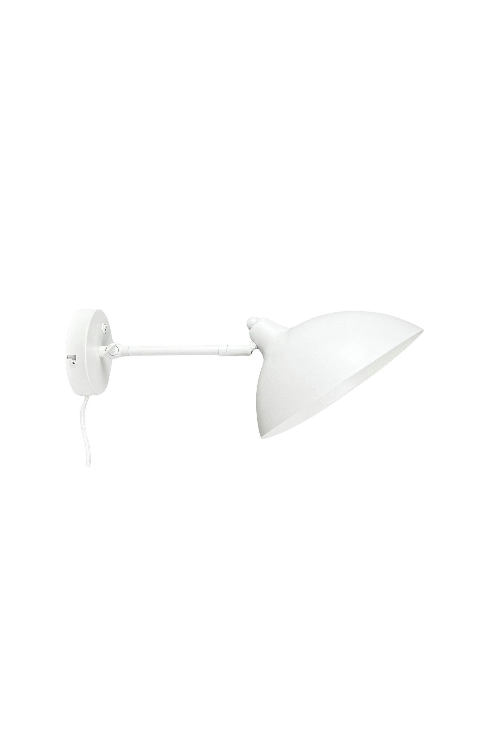 Futura-væglampen har en smuk form og et tidløst design i hvidt metal, som giver et rent, minimalistisk look. Den justerbare skærm kan vippes og drejes, og lampen leveres med en 2 m lang stofledning. En del af en serie med bord-, gulv- og væglamper.