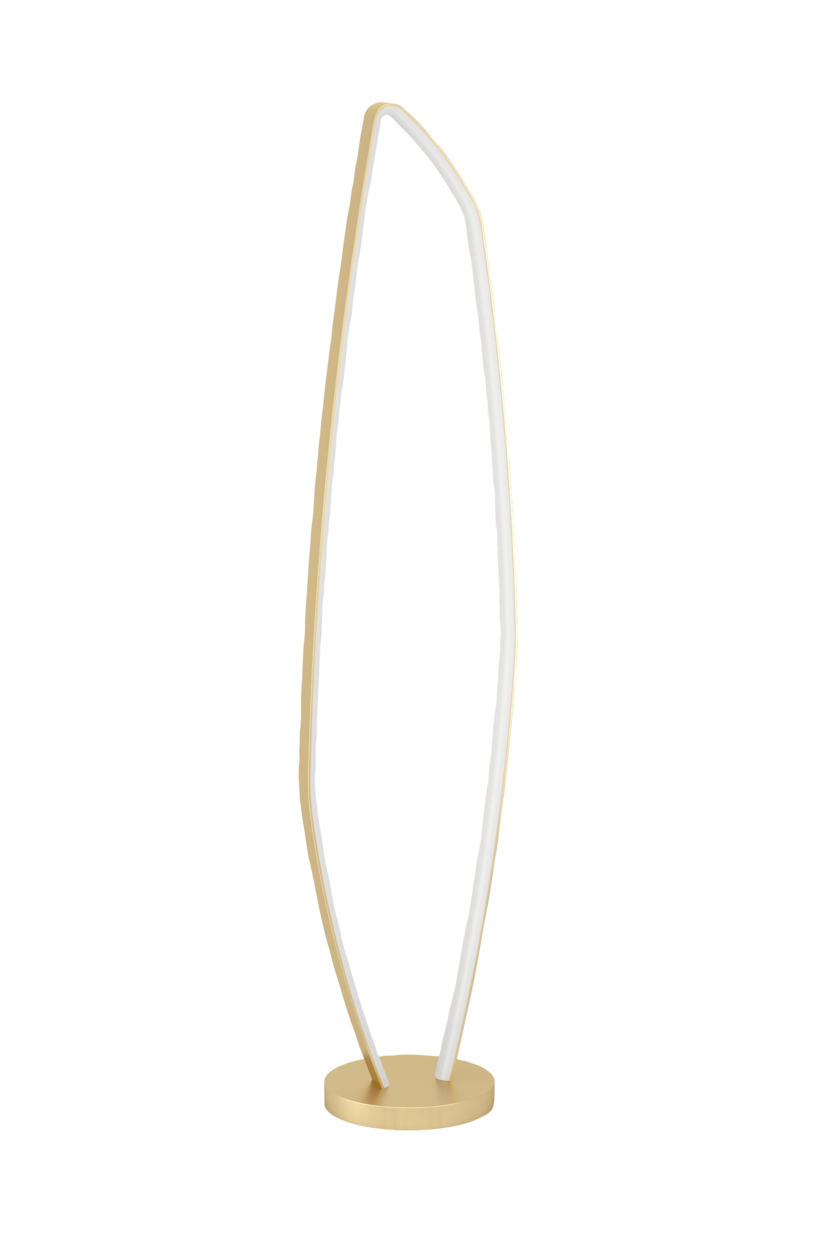 vallerosa gulvlampe tilføjer elegance til moderne interiør med sit slanke, minimalistiske design. Rammen i børstet messing og den bløde hvide skærm giver et varmt, omgivende lys (3000k) med 3400 lumen, perfekt til hyggelige rum. Ideel til både hjem og stilfulde kommercielle omgivelser.